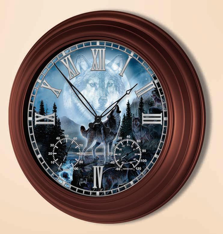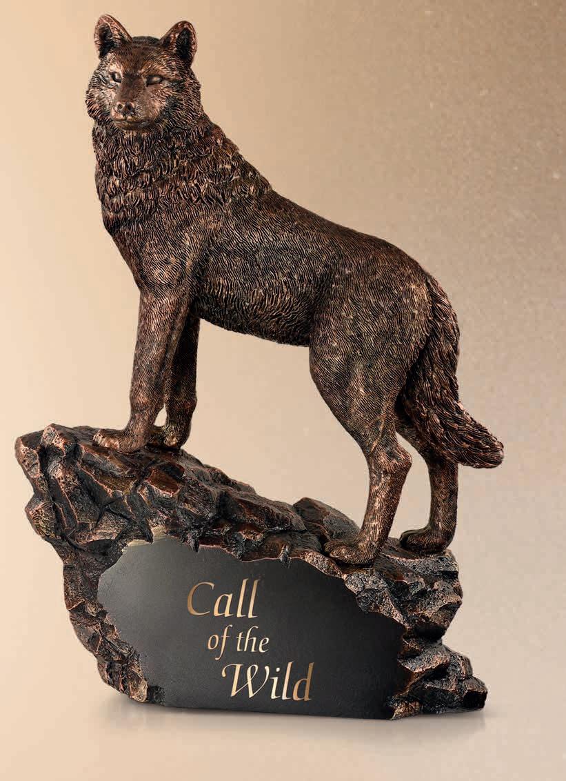 Mr. Agnew’s imagery takes on new life in a fully-sculptural design. This masterpiece has been crafted with built-in lights tucked within and above the wildlife, creating a work of art that’s marvellous to behold day or night. The lights operate on an easy-to-use 24-hour timer.