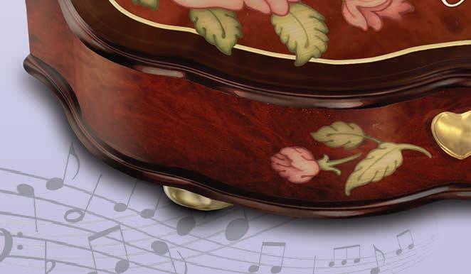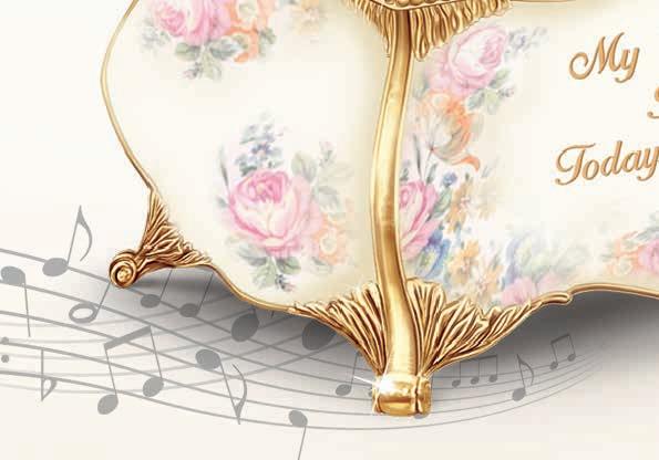 Handcrafted from Heirloom Porcelain®, and lavished with hand-applied 22-carat gold, the music box features more than 80 faux gems and opens to reveal a sculpture of a little owl. The curved base displays a scene from a painting of artist Kayomi Harai. Plays ‘Beautiful Dreamer ’.