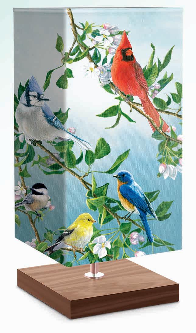 This handcrafted lantern features built-in illumination, 3D songbird sculptures and a snowglobestyle design – complete with continuous snowflake motion. Features 5 sculpted songbirds – a robin, bluetit, goldfinch, wren and kingfisher – and each has been handcrafted and handpainted. A simple flip of a switch is all that it takes to send snowflakes swirling around the sculpted songbirds.