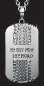 Showcases the sleek design and colours of BSA’s best-selling models, and is handcrafted in stainless steel. Featuring black enamel, the pendant is embellished with a bas-relief teardrop tank emblem, which once emblazoned the classic BSA Super Rocket and Spitfire motorcycles. The engraved reverse depicts a tyre tread motif with, ‘Ready For The Road’.
