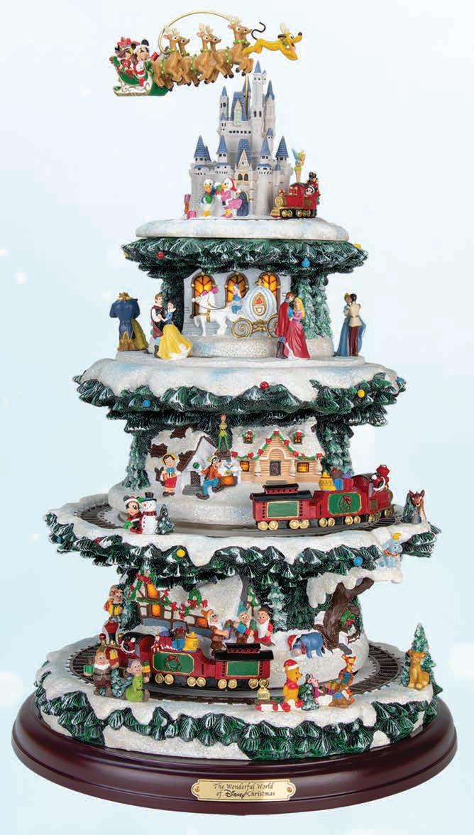 With 4 levels of rotating movement on this breathtaking Disney Christmas décor, the officially licensed Disney Express seems to ‘climb’ ever higher up the tree, lit by 20 LED lights. At the very top, Mickey’s at the reins of a Pluto-and-reindeer drawn sleigh that rotates around Cinderella’s magic castle. Plays a medley of carols.
