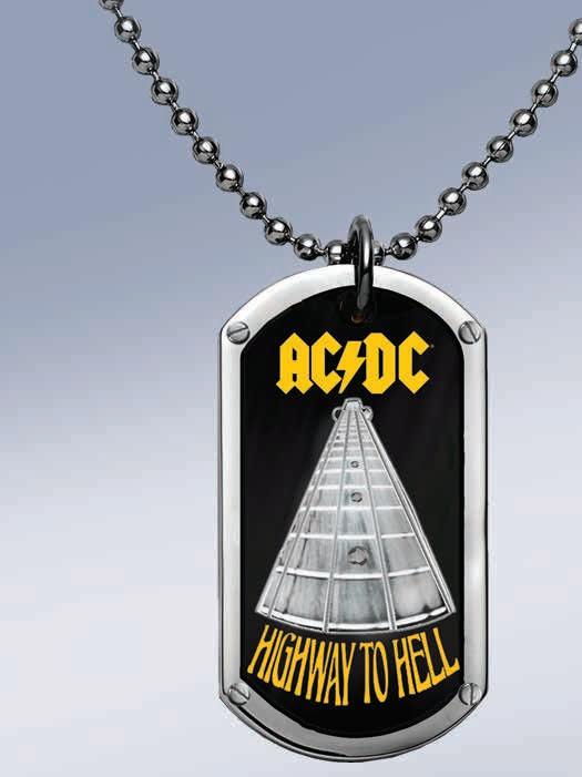 Captures the vibe of the Highway to Hell album in built-tough stainless steel, inlayed with blacker-than-black plating. The AC/DC logo and album title makes a statement in yellow enamel and bringing the two together is a metal guitar fret symbolising the highway. On the reverse, the album’s release date and a 40th anniversary message are engraved.