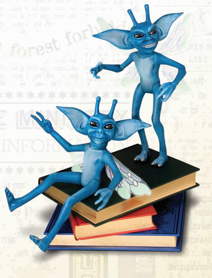 Sculpted and recreated in high-quality artist’s vinyl, these pixies have glossy black inset eyes and expert handpainted bodies. Poseable arms and legs allow you to display them standing or seated, and their heads can be turned side to side.