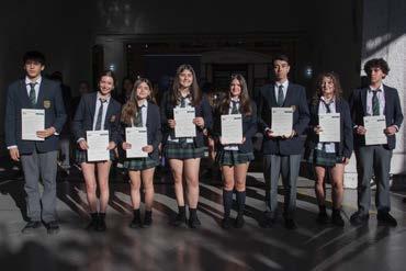 Durante la ceremonia, los estudiantes de IV Medio que aprobaron el Diploma del Bachillerato Internacional, Isidora Navarrete, Kira Ullmann, Trinidad Marín, Devesh Sharma, Diego Muñoz, Ignacio Valdés, Ignacio Vega y Mario Sangüesa, recibieron su certificado de aprobación de manos de los coordinadores del programa.