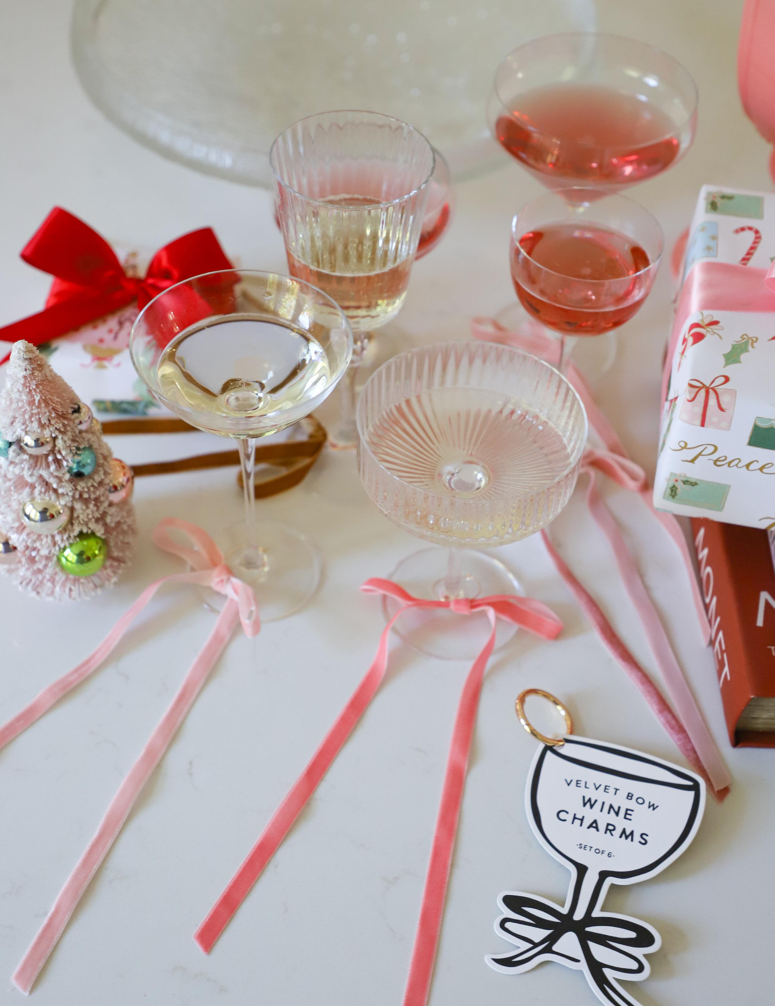 SANTA BARBARA VELVET BOW WINE CHARMS