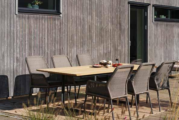 Design, das für sich spricht. Lyra hat eine großzügige Sitztiefe, einen angenehmen Sitzwinkel und äußerst komfortable, dicke Auflagen. Details aus Kunstrattan an den Armlehnen. Rahmen aus pulverbeschichtetem Edelstahl und wasserabweisende Auflagen aus Olefin-Gewebe mit TPU-Beschichtung. Auch als Essgruppe erhältlich.