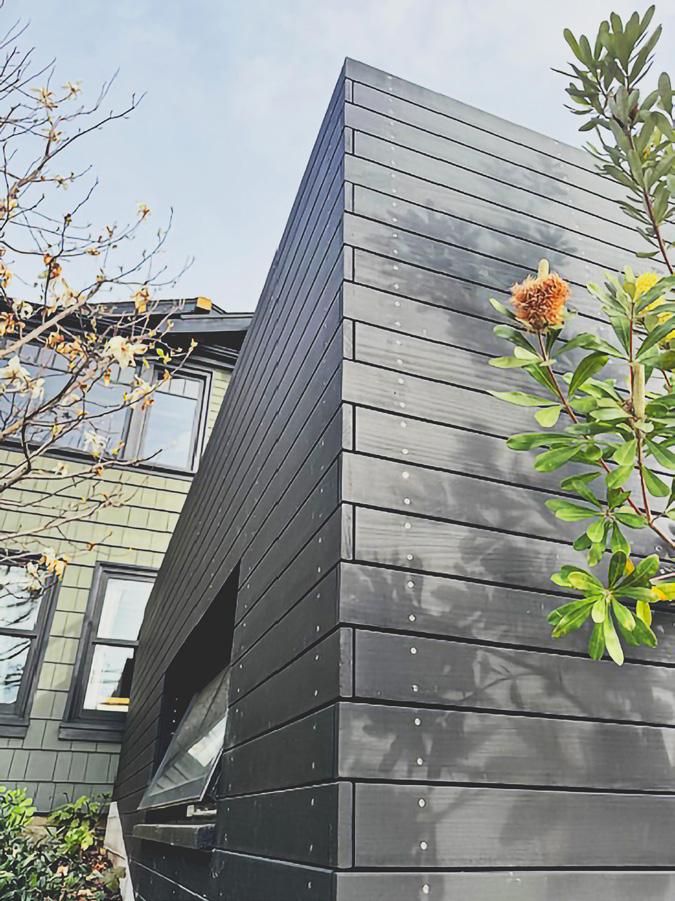 The addition of an accessory dwelling unit presented design challenges due to the steep terrain, which limited placement options for the structure. To address these constraints, the unit was positioned along the west side of the property, adjacent to the existing residence, and partially embedded into the site at the rear. The building’s unique shape reflects the limitations imposed by required setbacks and the allowable distance from the main residence.