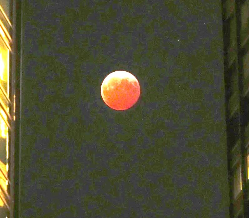 A TOTAL LUNAR ECLIPSE, known as the blood moon, was visible between skyscrapers in 2025, the last time this phenomena happened.