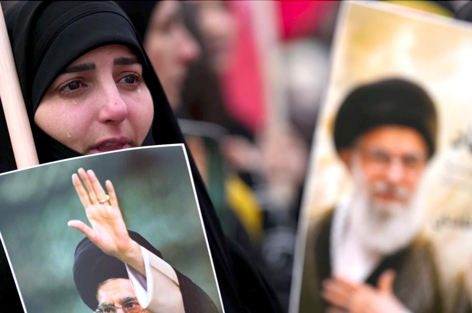 GRIEVING — A woman cries as she mourns the death of Iranian Supreme Leader Ayatollah Ali Khamenei during a gathering in Beirut yesterday. AP photo.