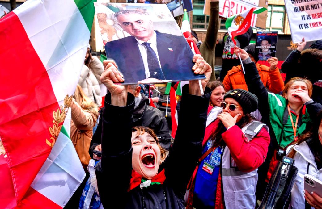 RALLY FOR A REVOLUTION — A woman holds a picture of Reza Pahlavi during a rally in New York supporting the U.S. and Israeli attack on Iran. AP photo.