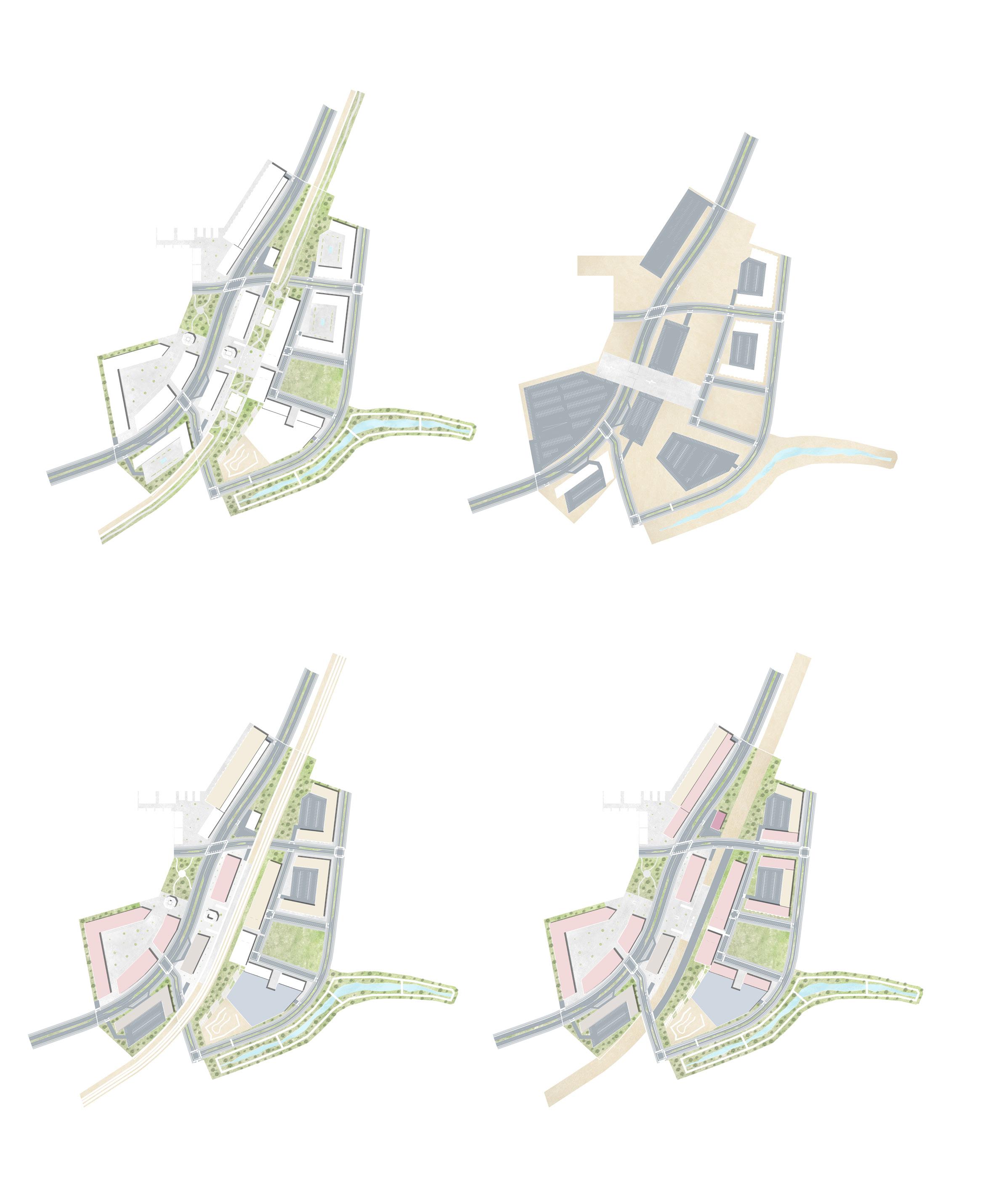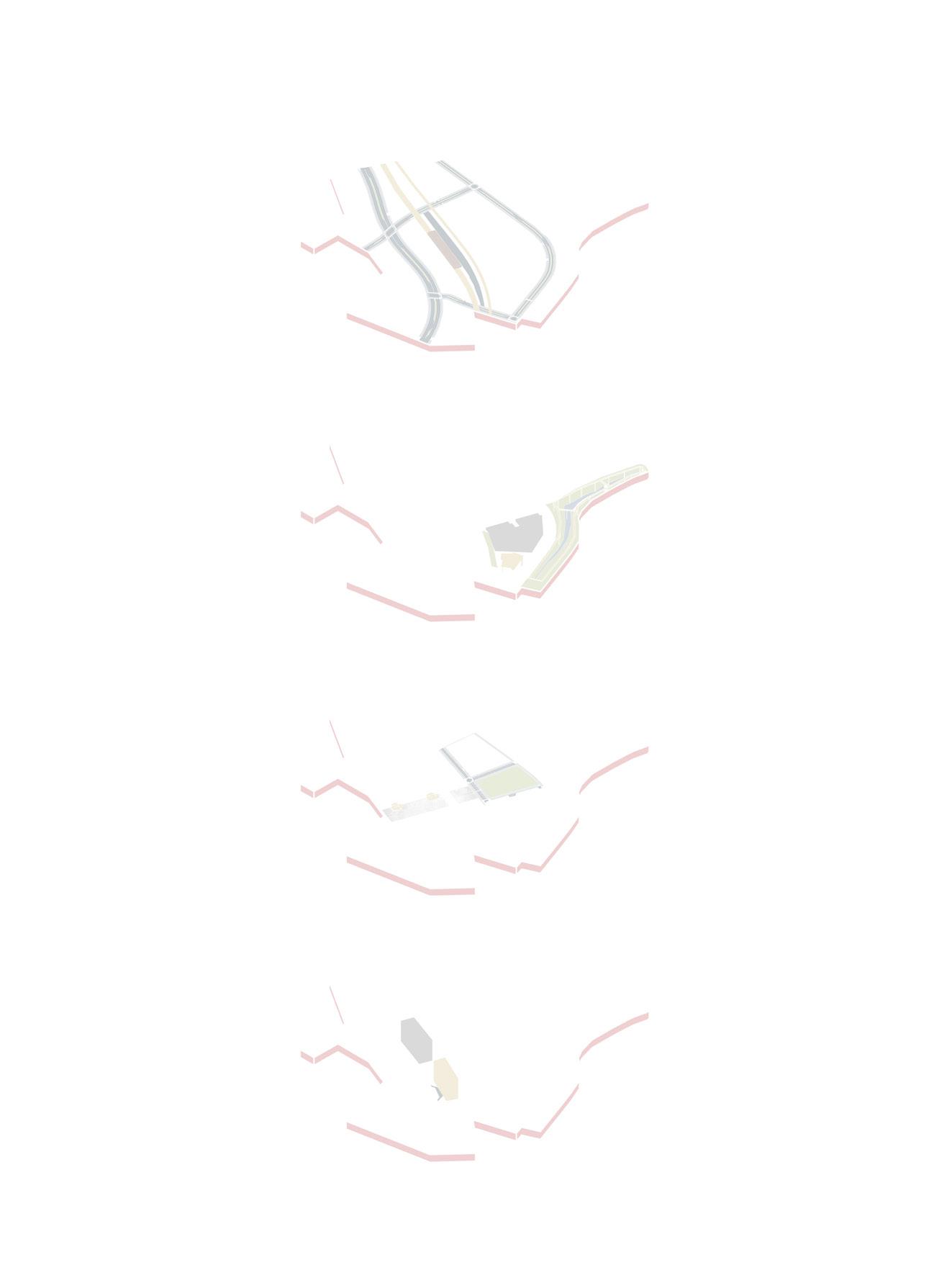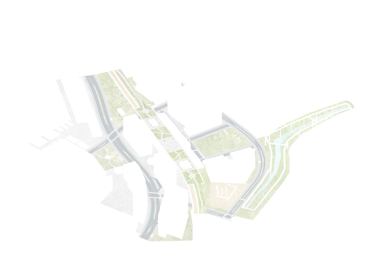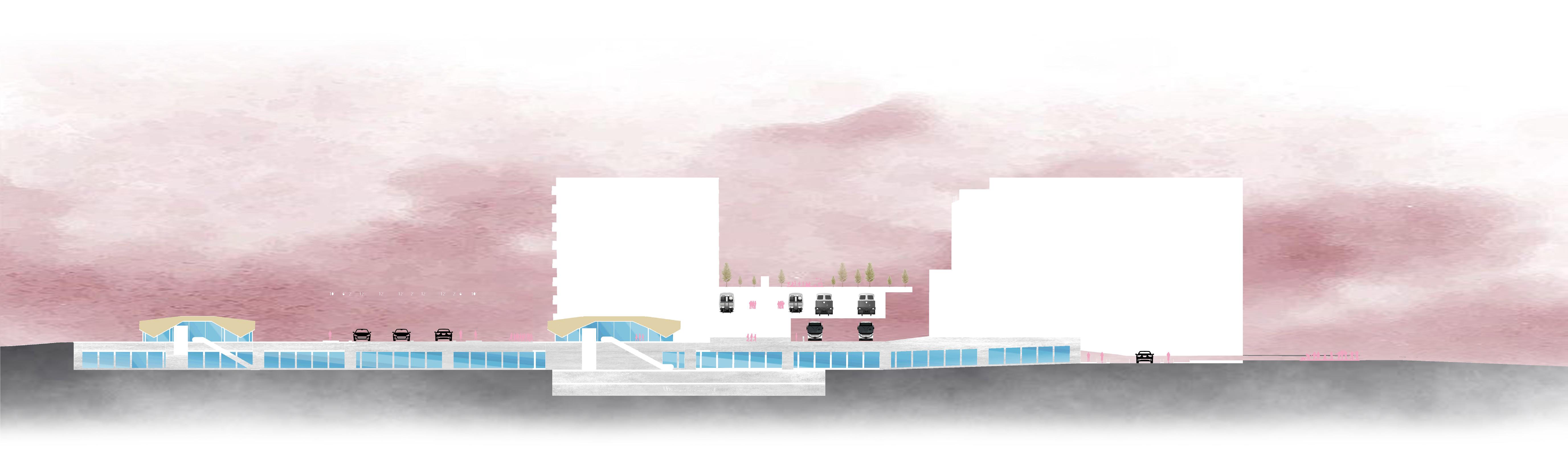 LINEAR PARK DESIGNED DIRECTLY ON TOP OF THE RAILS TO BRING CONNECTION FROM THE SITE CONTEXT. MIX-USE HOUSING DEVELOPED WITH THE ADDITIONAL SPACE PROVIDED, BINDING THE BUILDING AND THE LINEAR PARK.