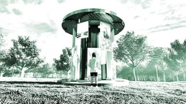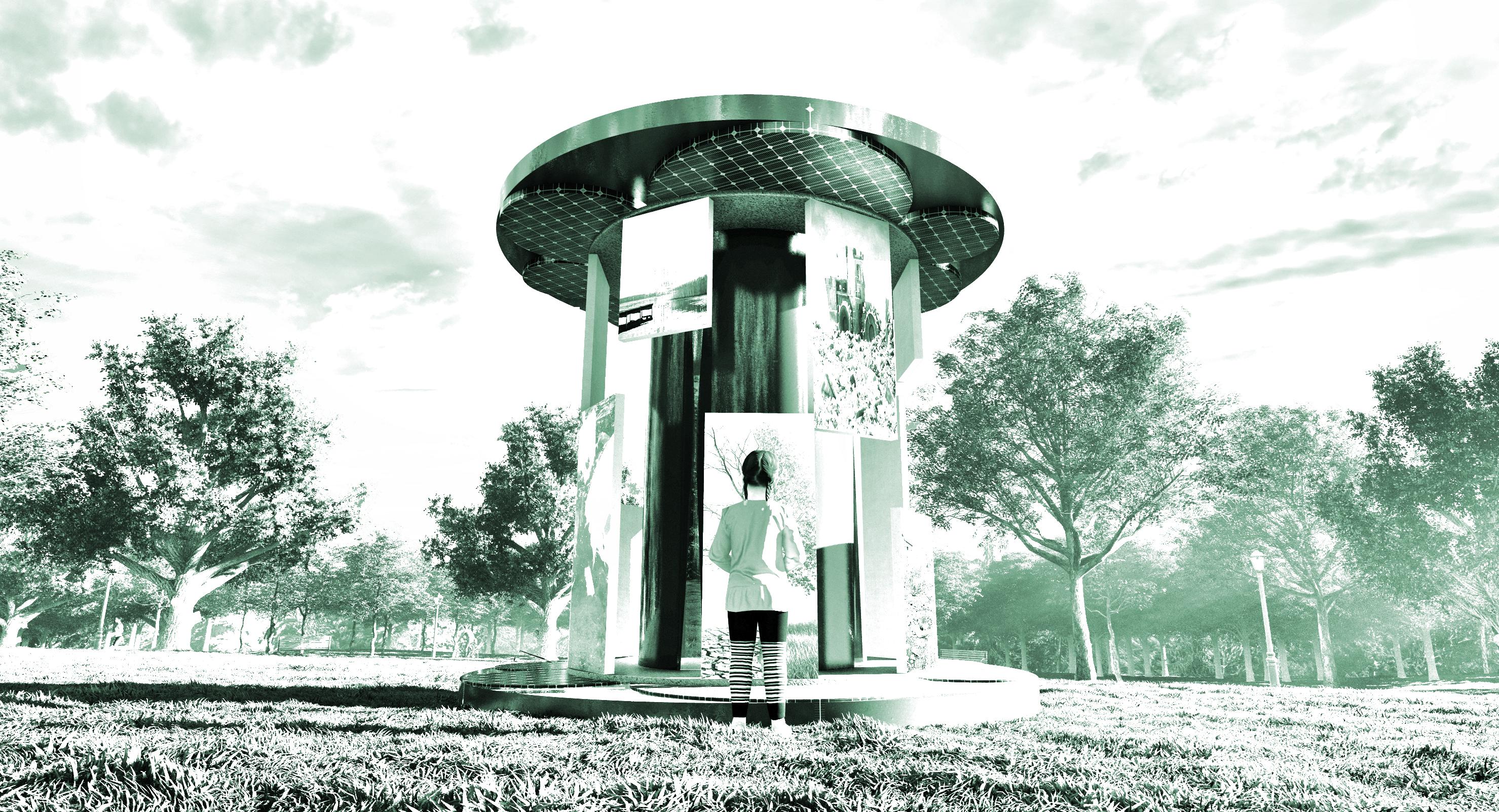 Made as a structure that would educate people about our environmental crisis, the Eye Whirl is a give-back to the world. Its purpose is to show people the worst of our world about pollution and show images of our planet’s future if we don’t stop. These images are powered by screens of different lengths with circular pads of solar power. A structure designed to fit its purpose of what it wants.