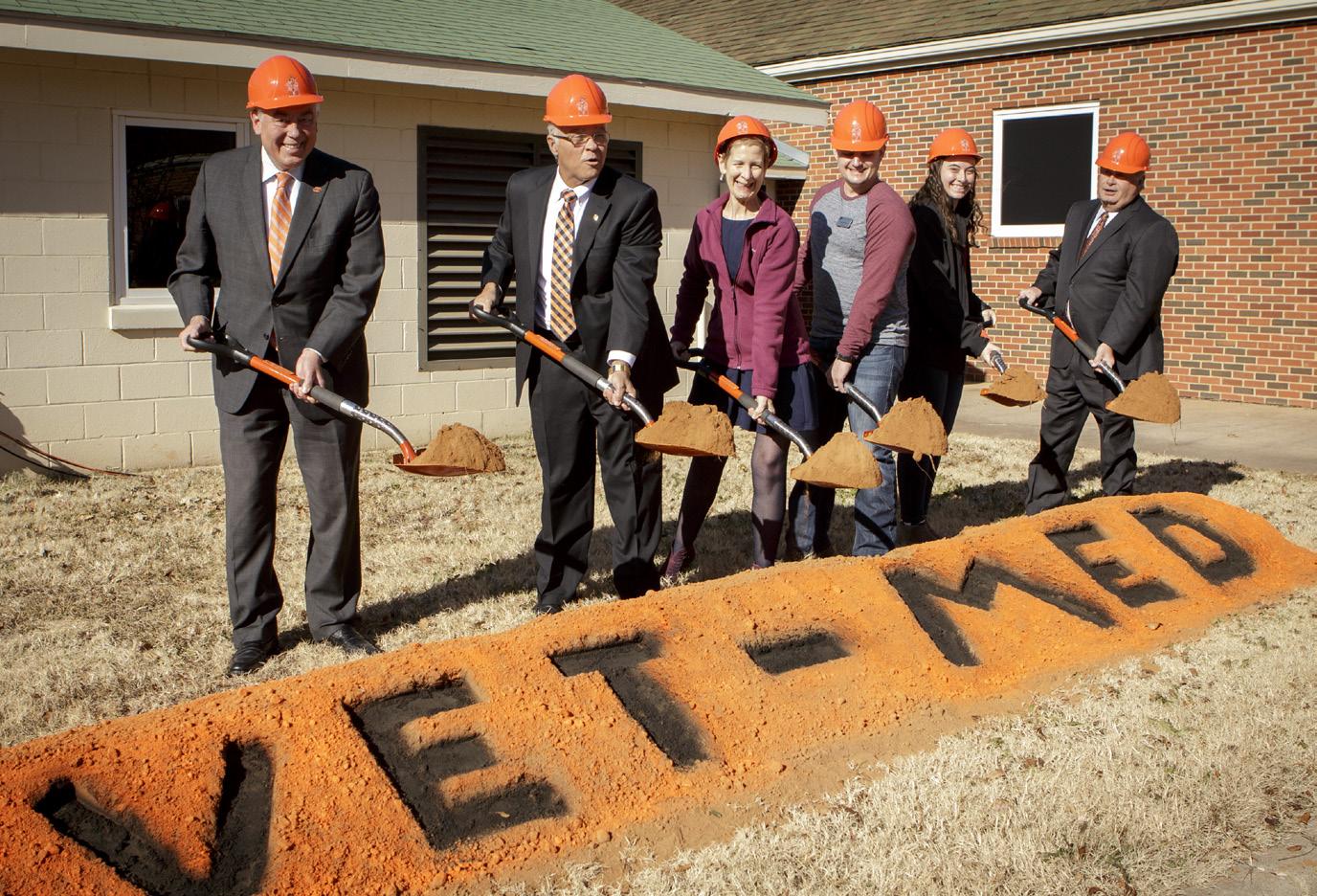 A new classroom building is going up for the Center for Veterinary Health Sciences — and a dog was recruited to help with the groundbreaking.