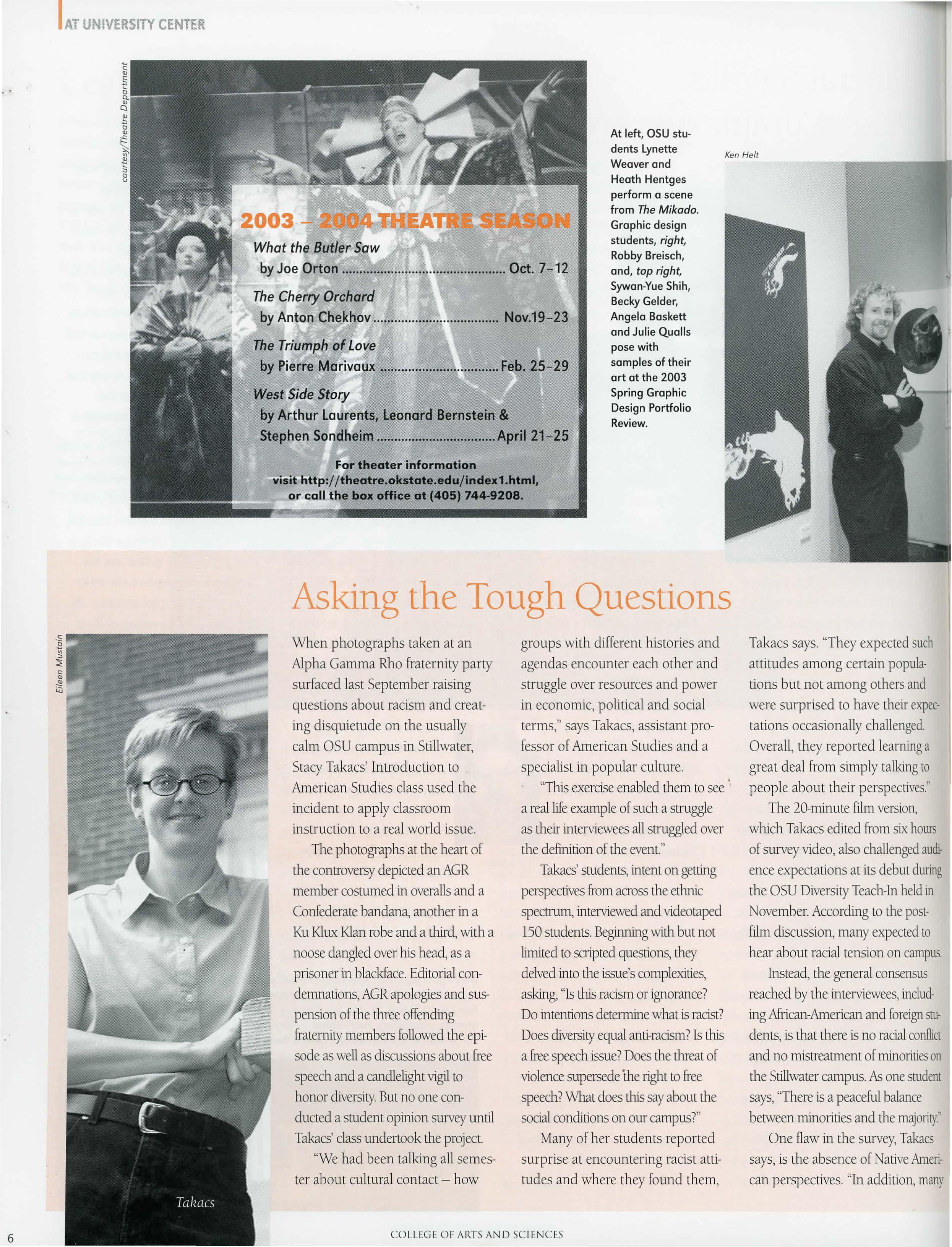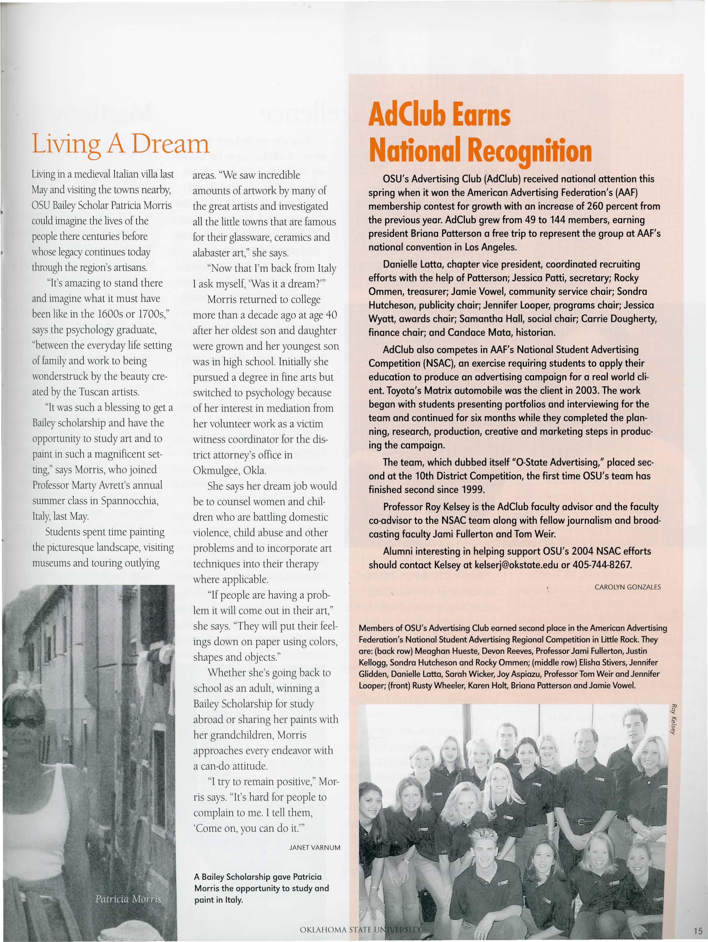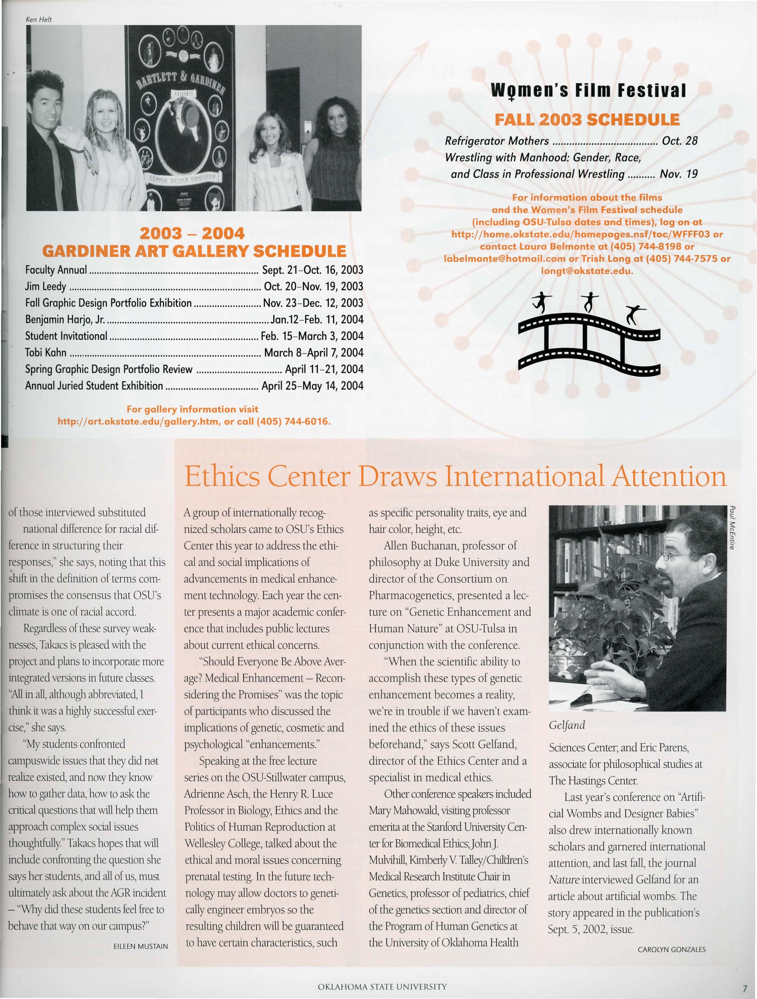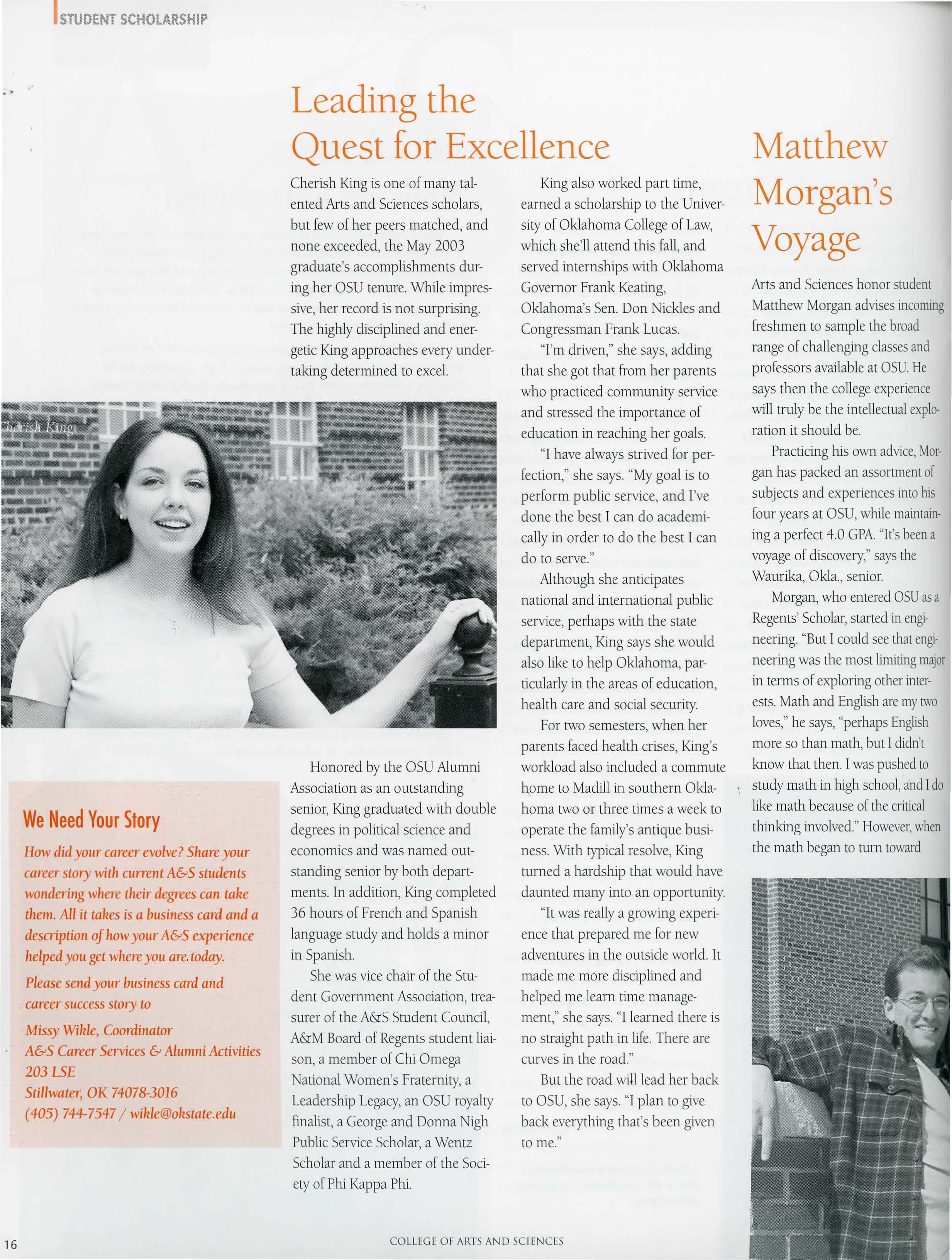 FORMORE INFORMATIONABOUTOSU HOMECOMING 2003, visit http://www.orangeconnection.org.For informationabout the Collegeof Arts & Sciences and other alumni activities,visit http://www.alumni.okstate.edu.