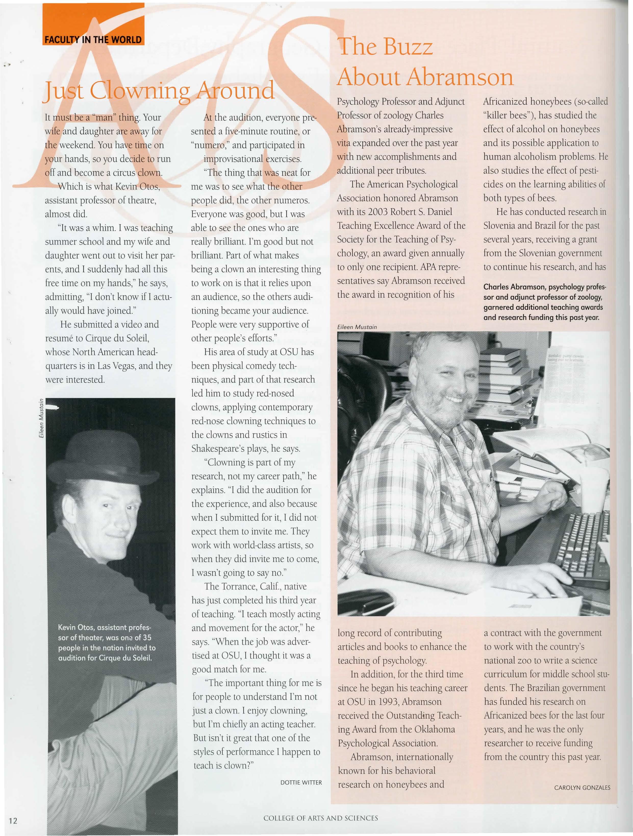 Acting and actor movementteacher KevinOtos, whose researchof physical comedytechniques includesthe study of clowns,was one of 35 people in the nation invited to audition for Cirque du Soleil.