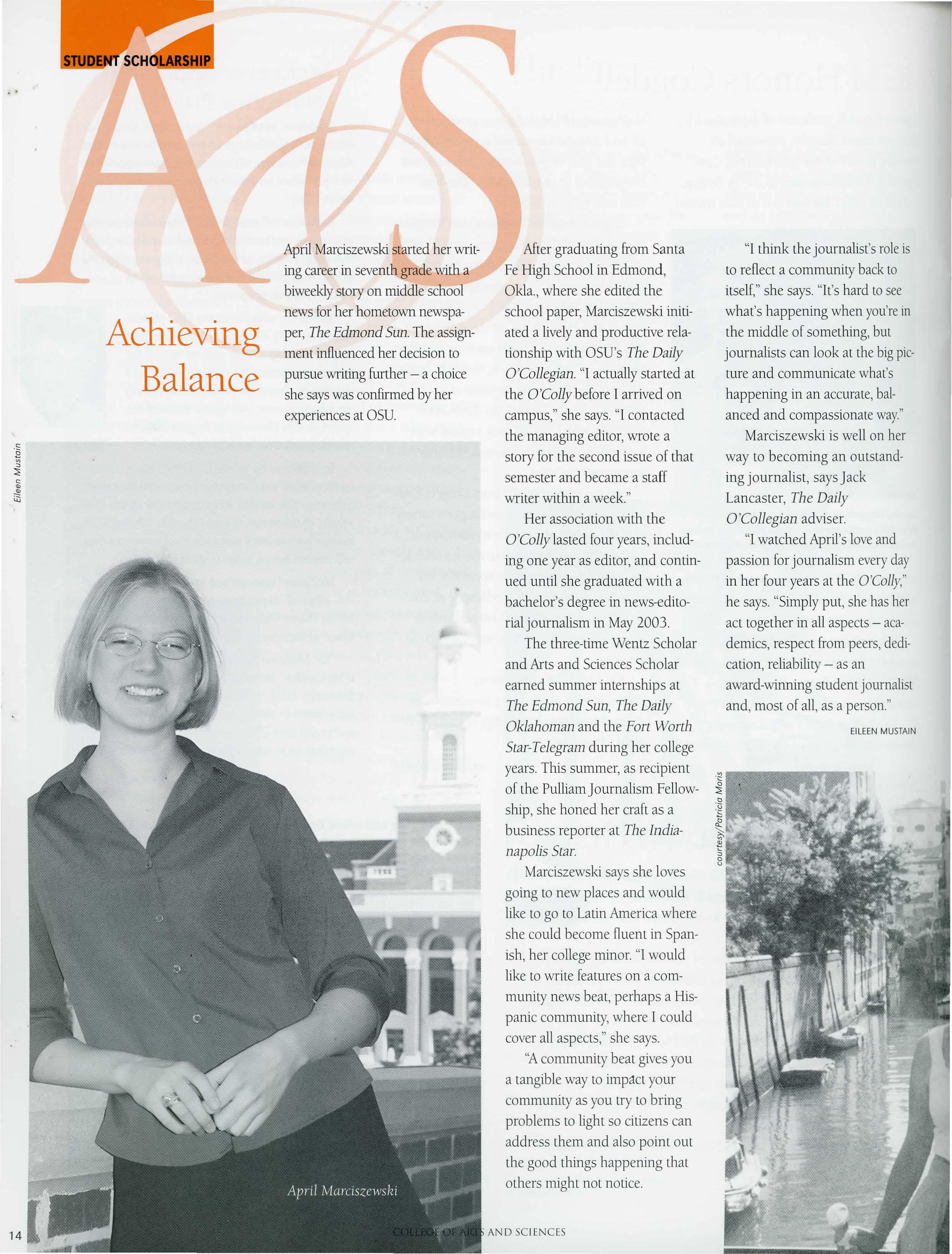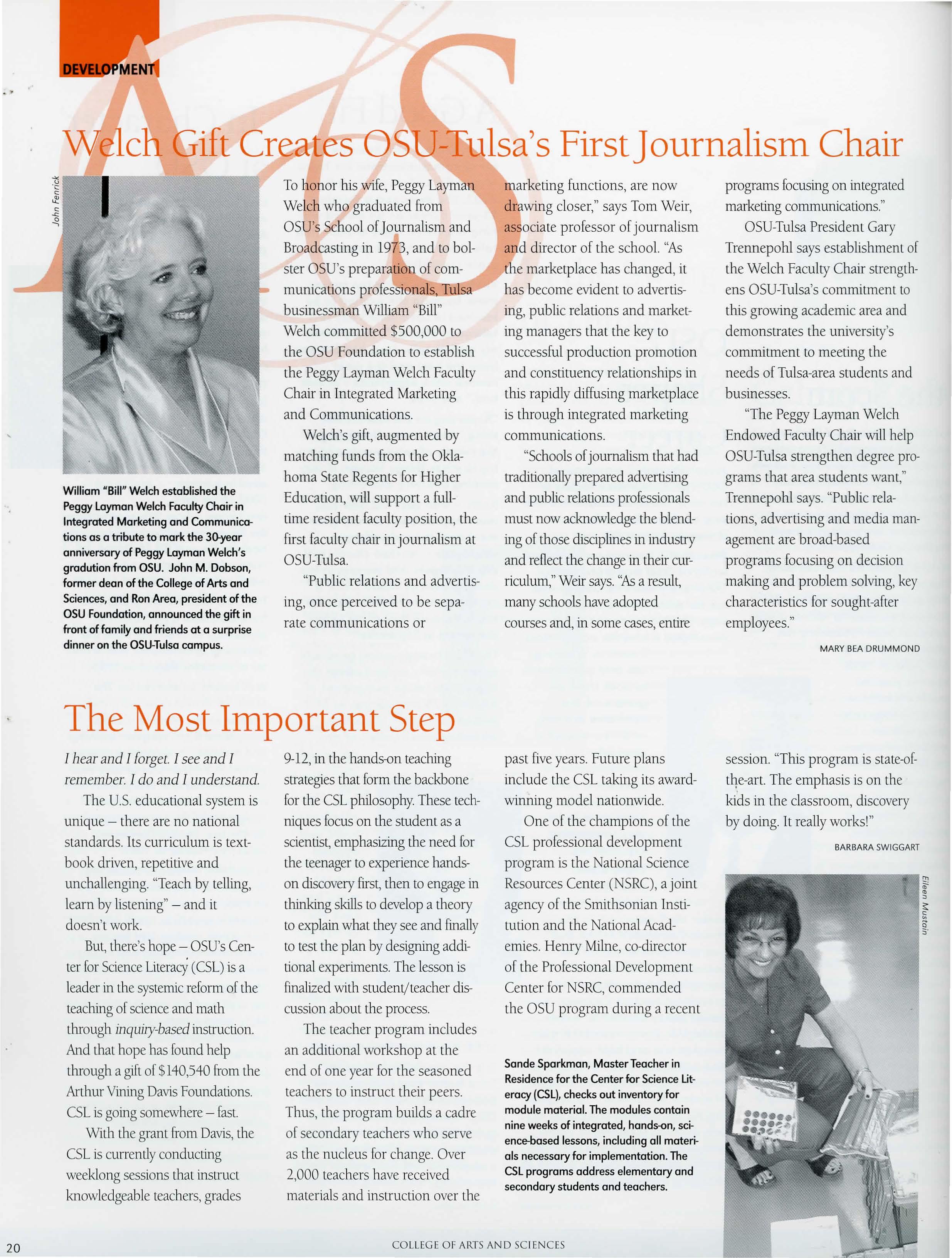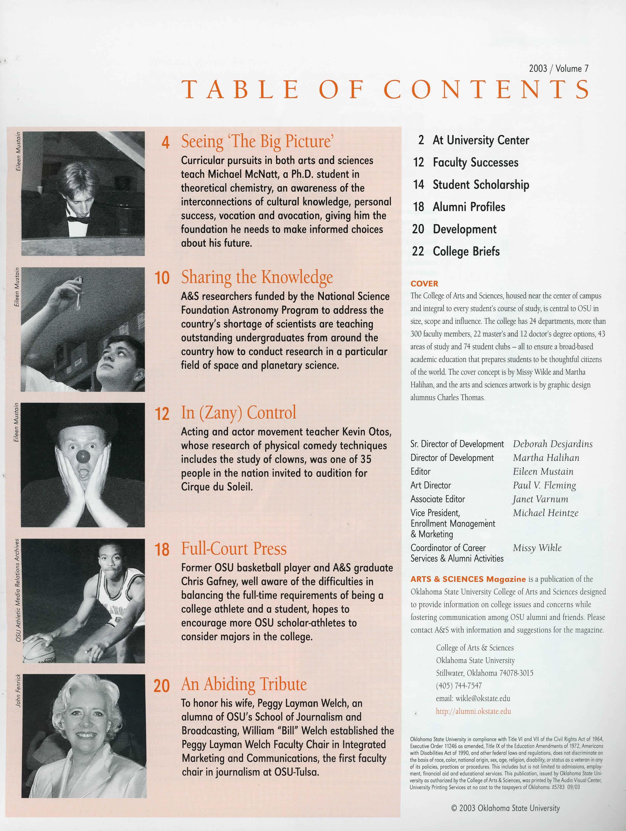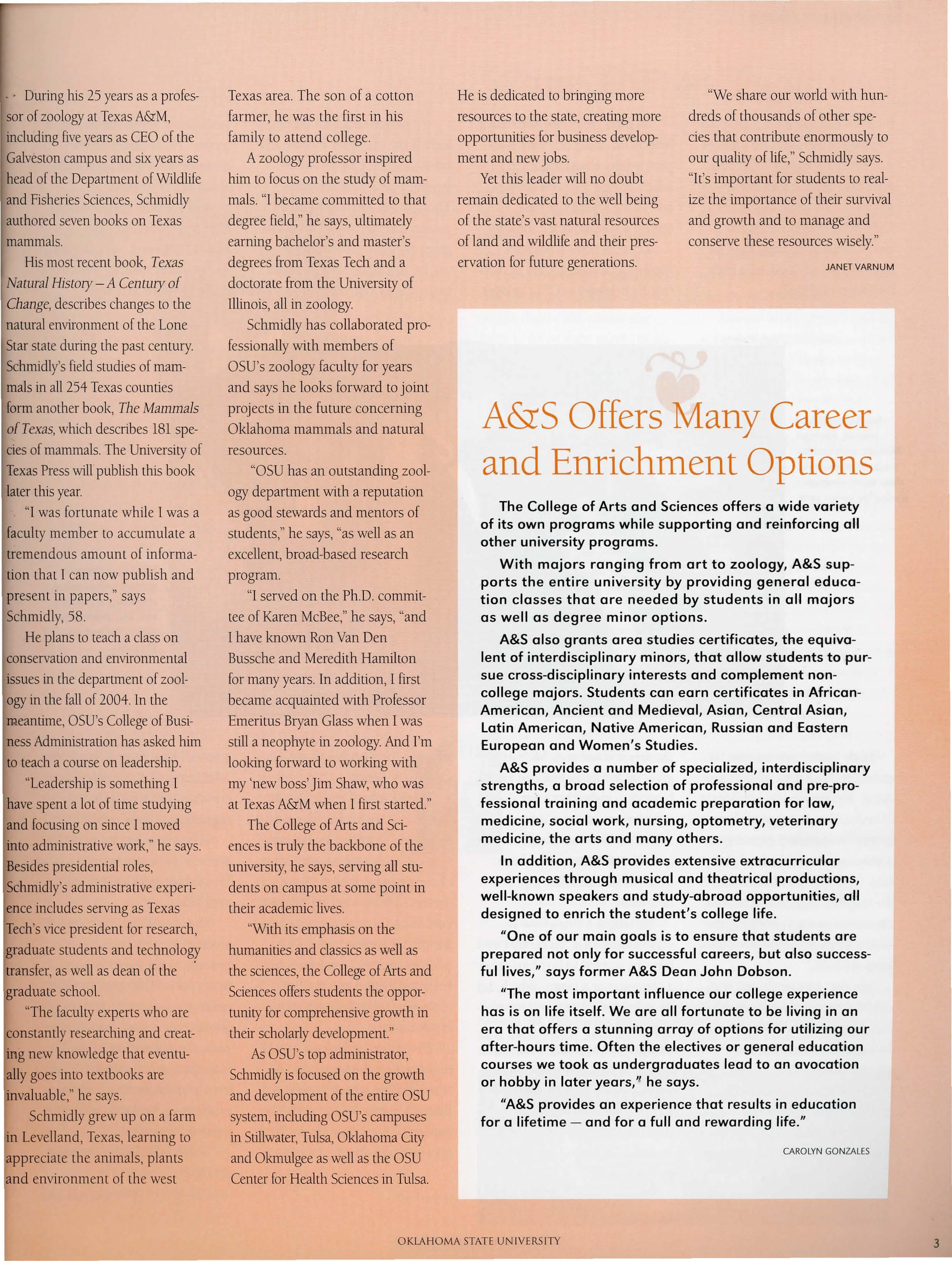 ARTS & SCIENCES Magazine is a publicationof the OklahomaStateUniversityCollegeof Artsand Sciencesdesigned to provideinformationon collegeissuesand concernswhile fosteringcommunicationamongOSUalumniand friends.Please contactA&S,vithi11formationand suggestionsfor the magazine.