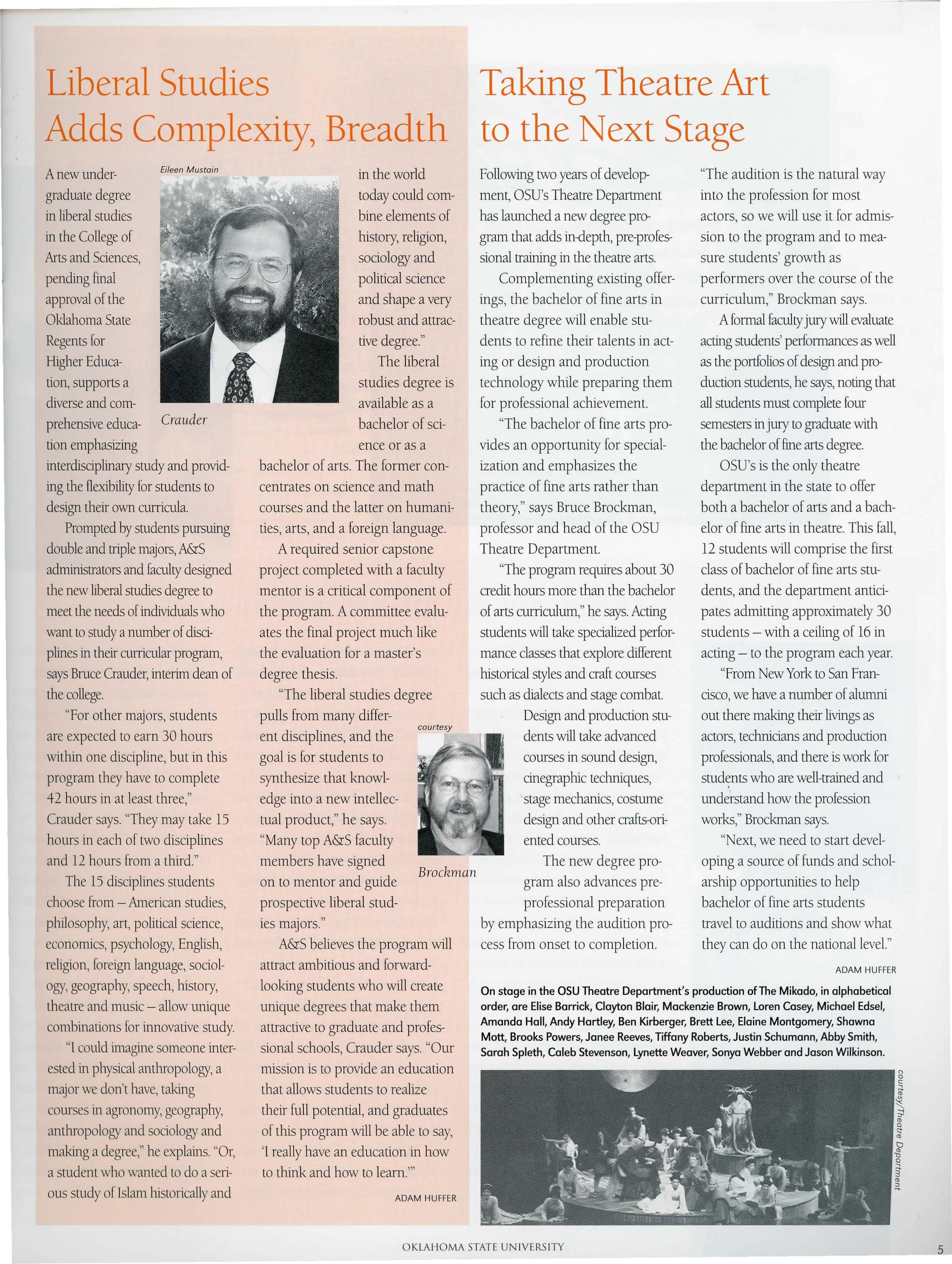 Anew undergraduatedegree in liberalstudies in the Collegeof Ansand Sciences, pendingfinal approvalof the OklahomaState Regentsfor HigherEducation,supportsa diverseand com-