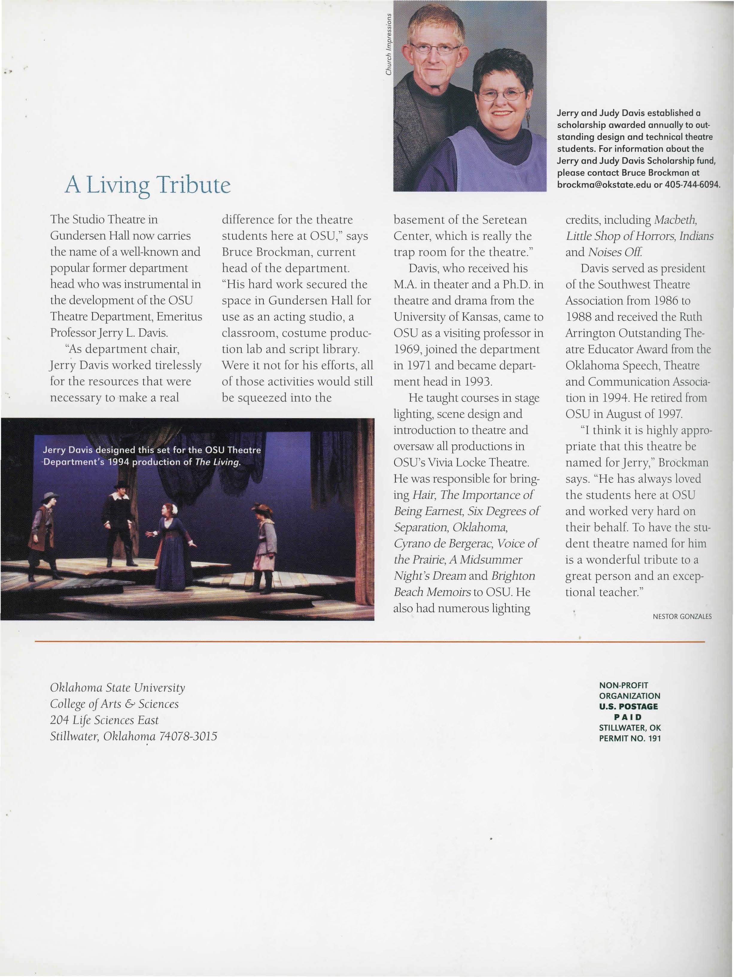 Davis, who received his M.A. in theater and a Ph.D. in theatre and drama from the University of Kansas, came to OSU as a visiting professor in 1969,joined the deparnnent in 1971 and became department head in 1993.