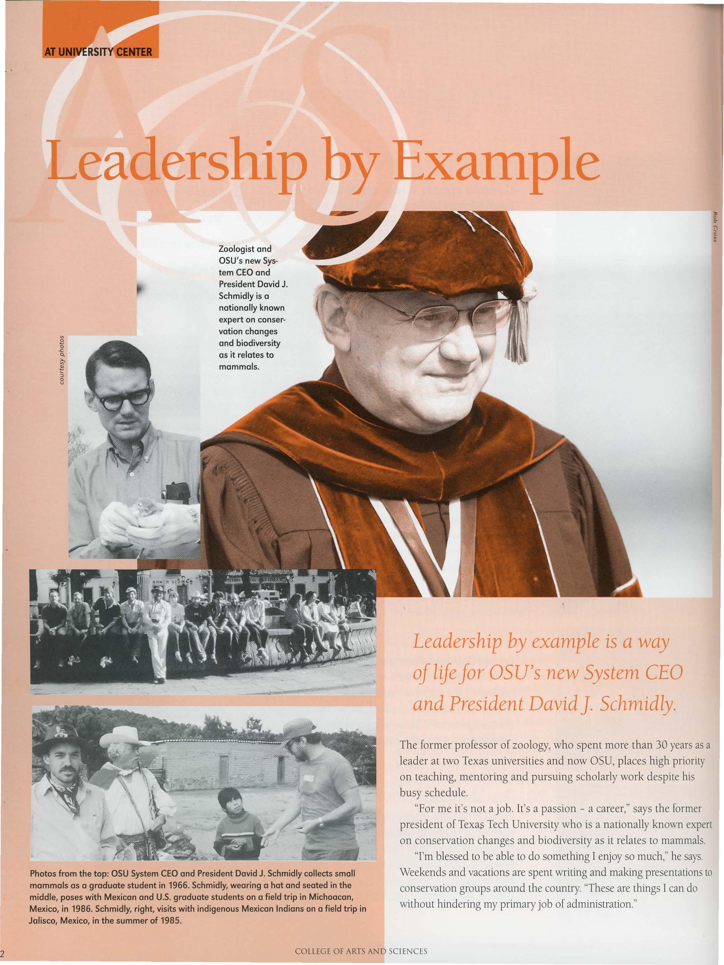"Leadershipis somethingI havespent a lot of time studying and focusingon since I moved into administrativework,"he says. Besidespresidentialroles, Schmidly'sadministrativeexperince includesservingas Texas ech's vicepresident for research, raduate students and technology ransfer,as wellas dean of the • raduate school.