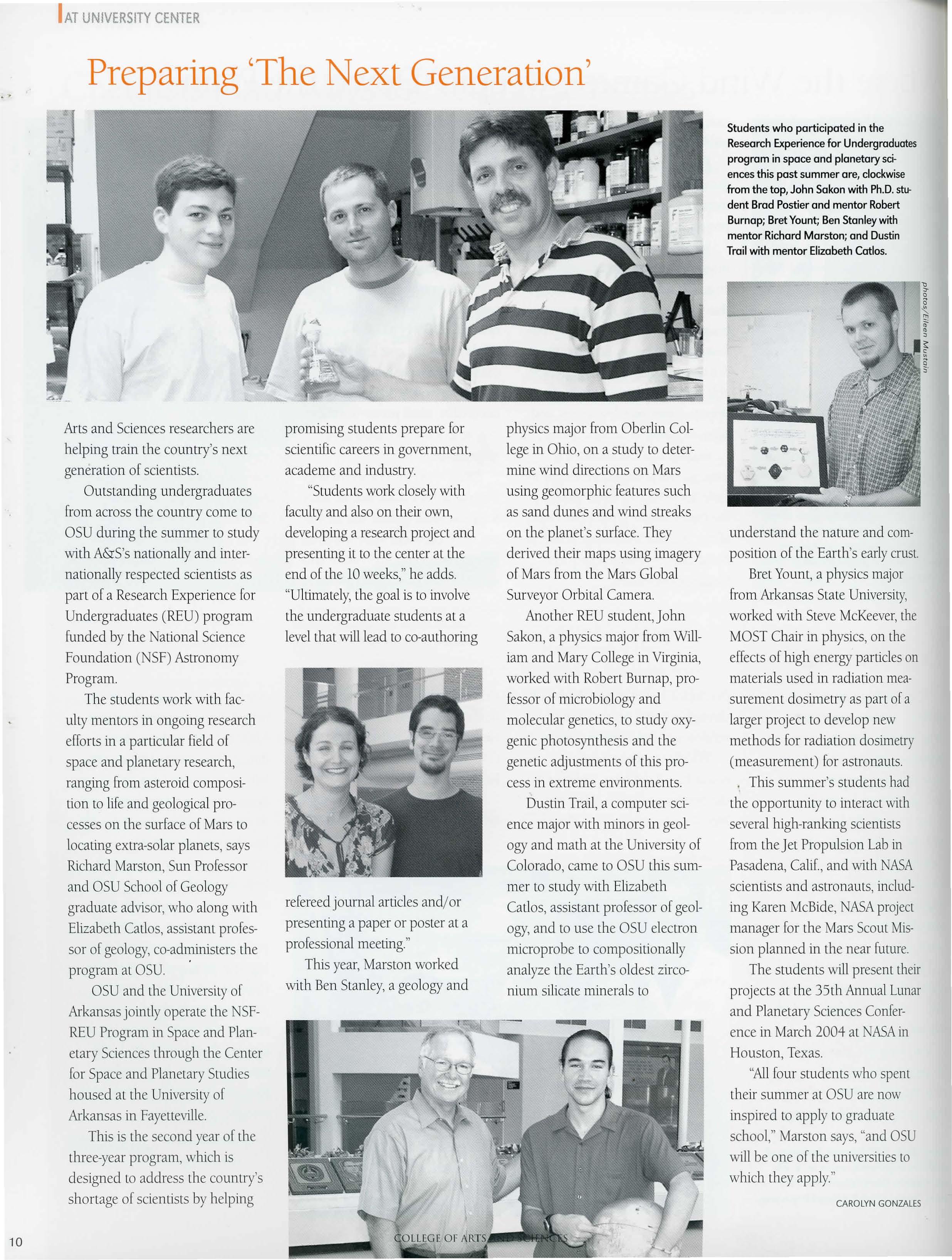 A&S researchersfunded by the National Science FoundationAstronomyProgramto addressthe country's shortage of scientistsare teaching outstandingundergraduatesfrom around the country how to conduct researchin a particular field of spaceand planetary science.