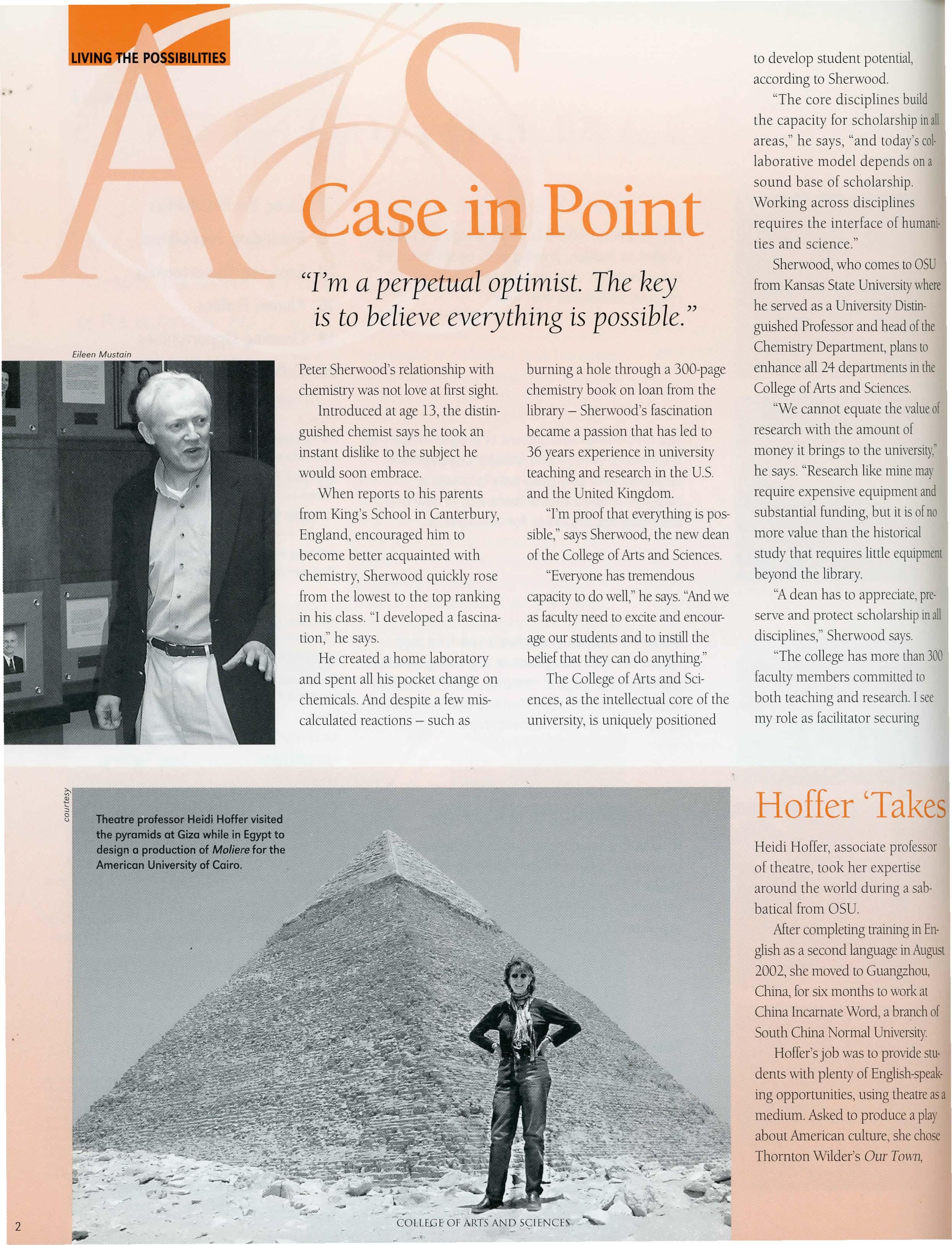 Sherwood,who comesto OSU fromKansas State Universitywhere he served as a UniversityDistinguished Professorand headofthe ChemistryDepartment,plansto enhance all 24 departmentsin the Collegeof Artsand Sciences.