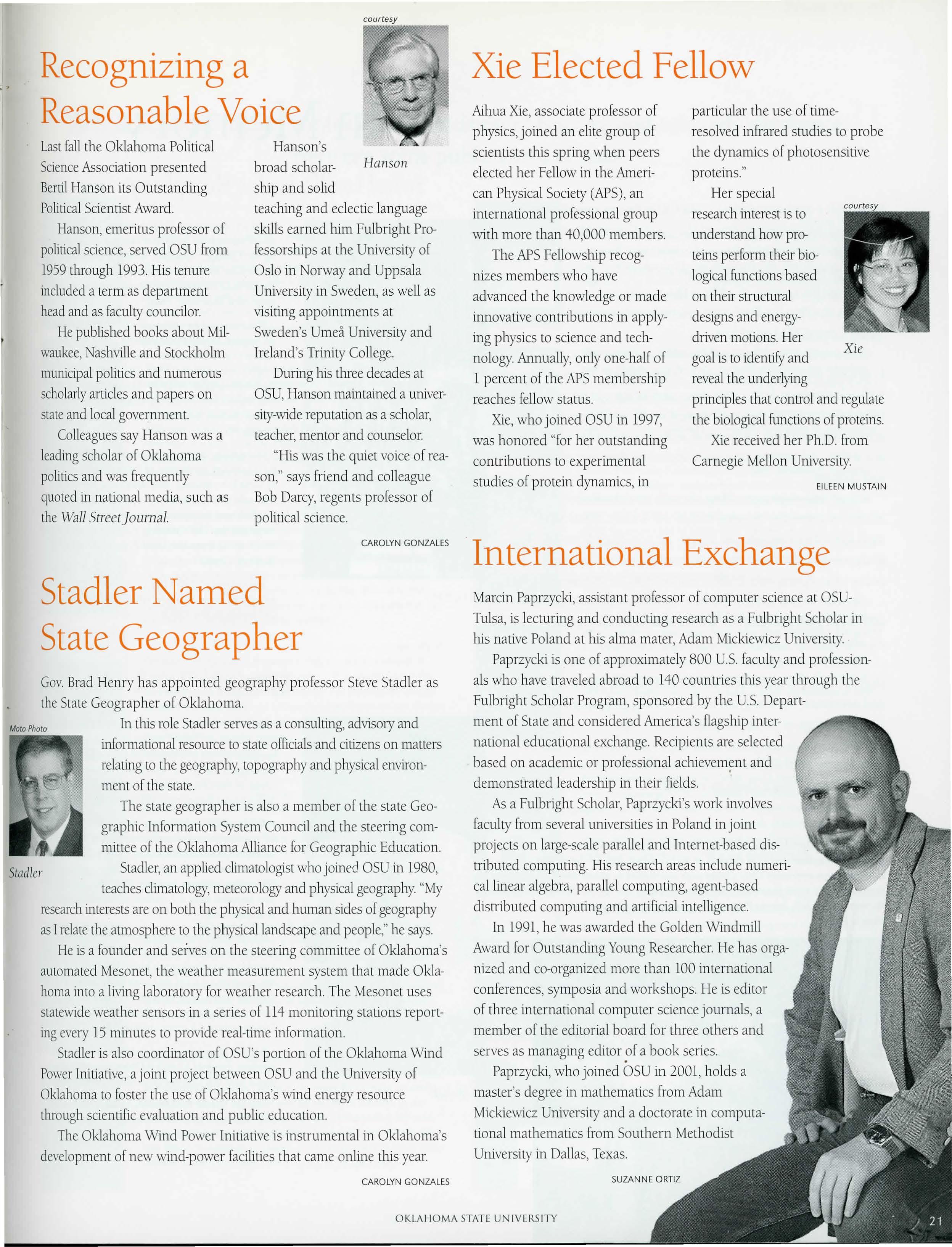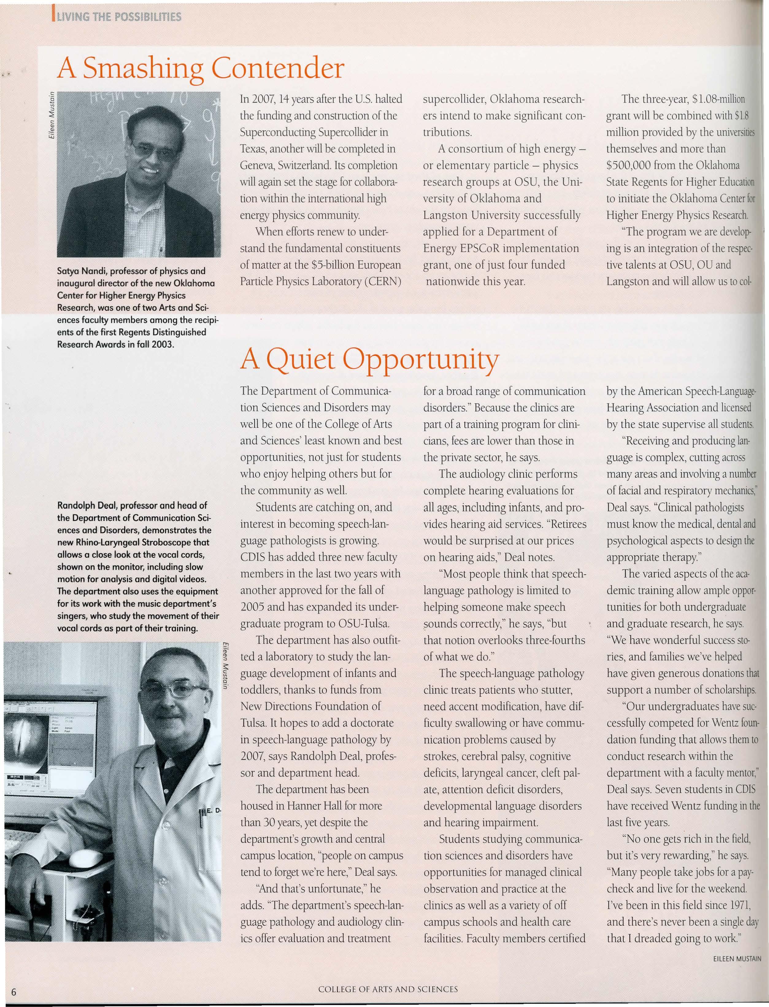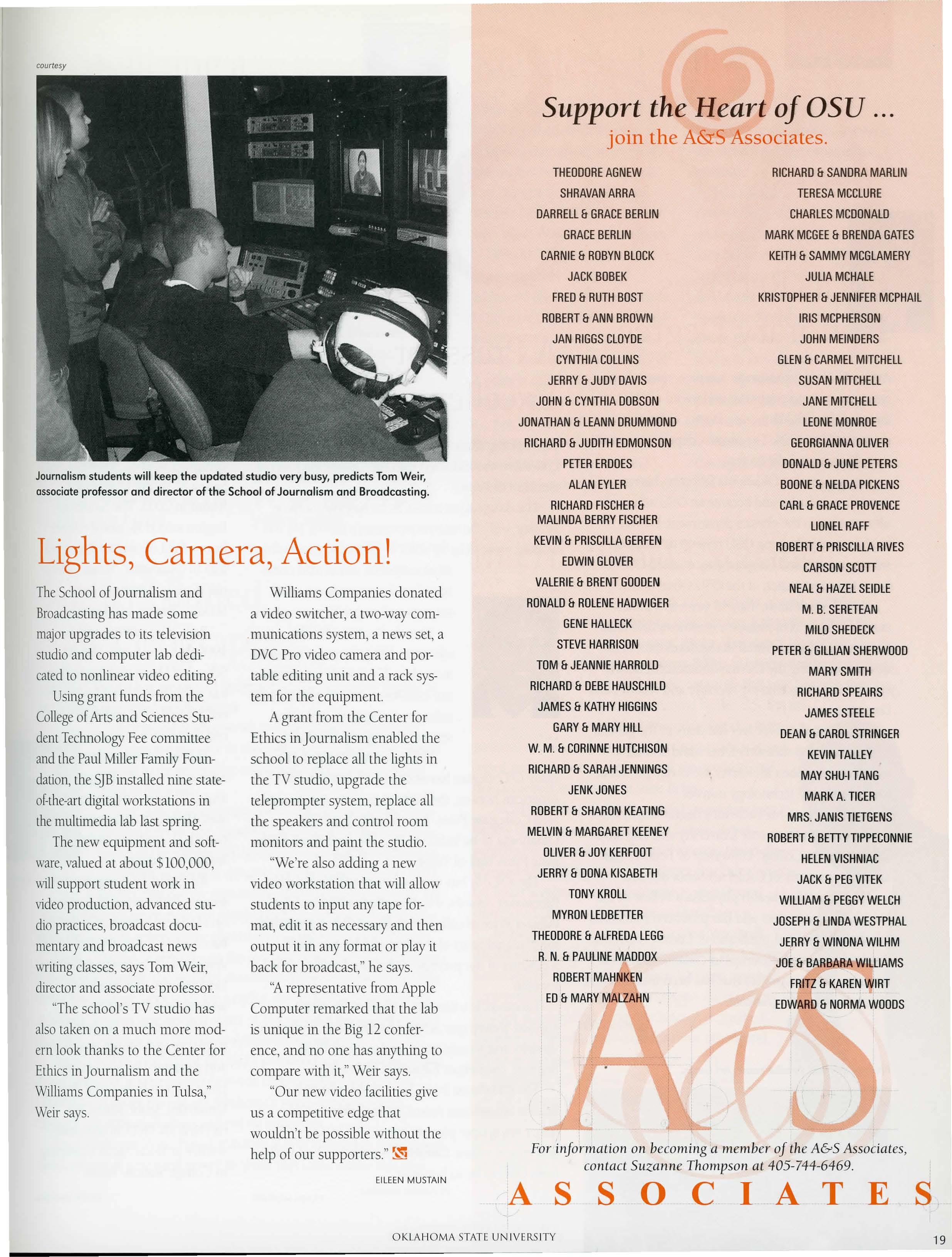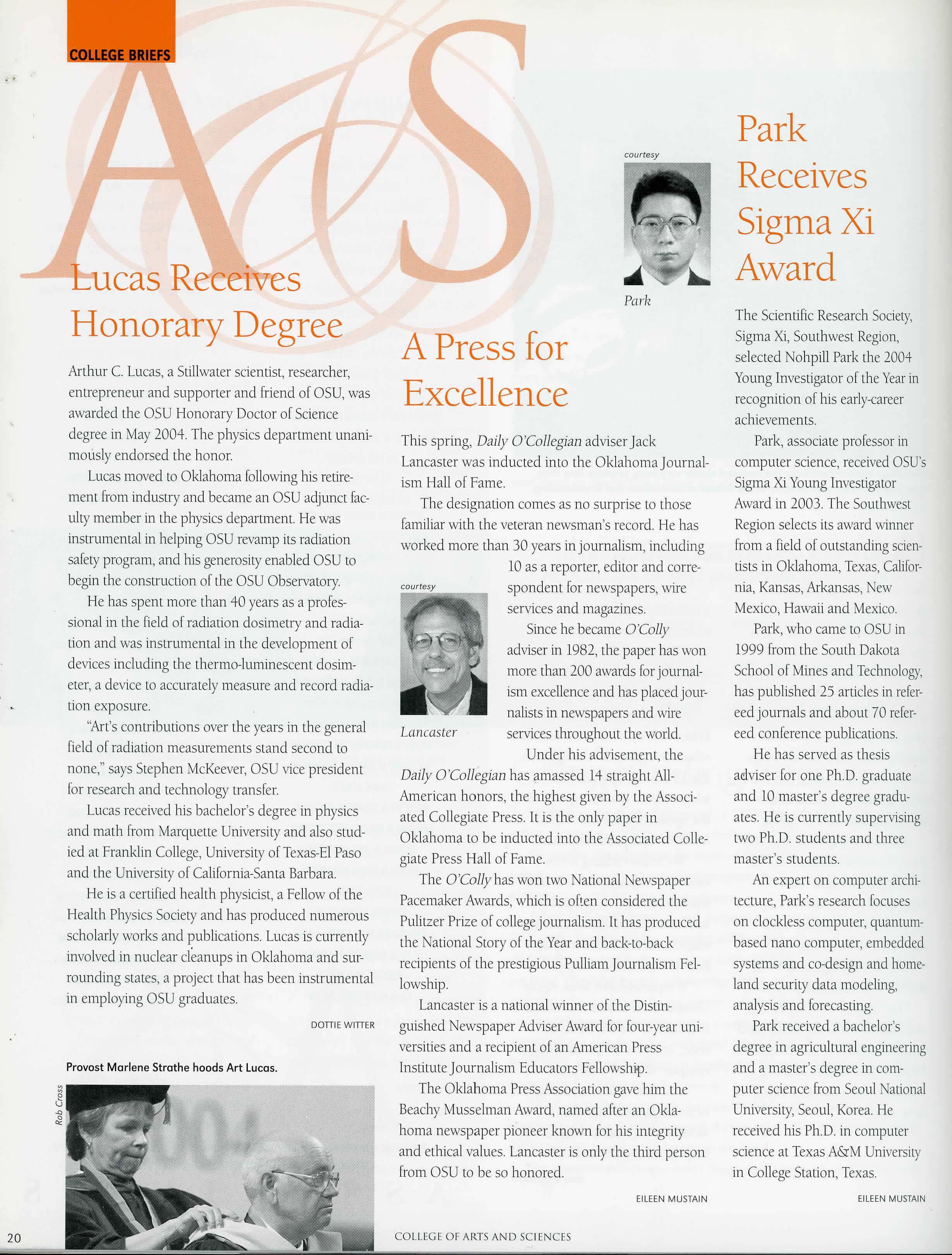 ARTS & SCIENCES Magazine is a publicationof the OklahomaStateUniversityCollegeof Artsand Sciencesdesigned to provideinformationon collegeissuesand concernswhile fosteringcommunicationamongOSUalumniand friends.Please contactA&Swith informationand suggestionsfor the magazine. Collegeof Ans & Sciences
