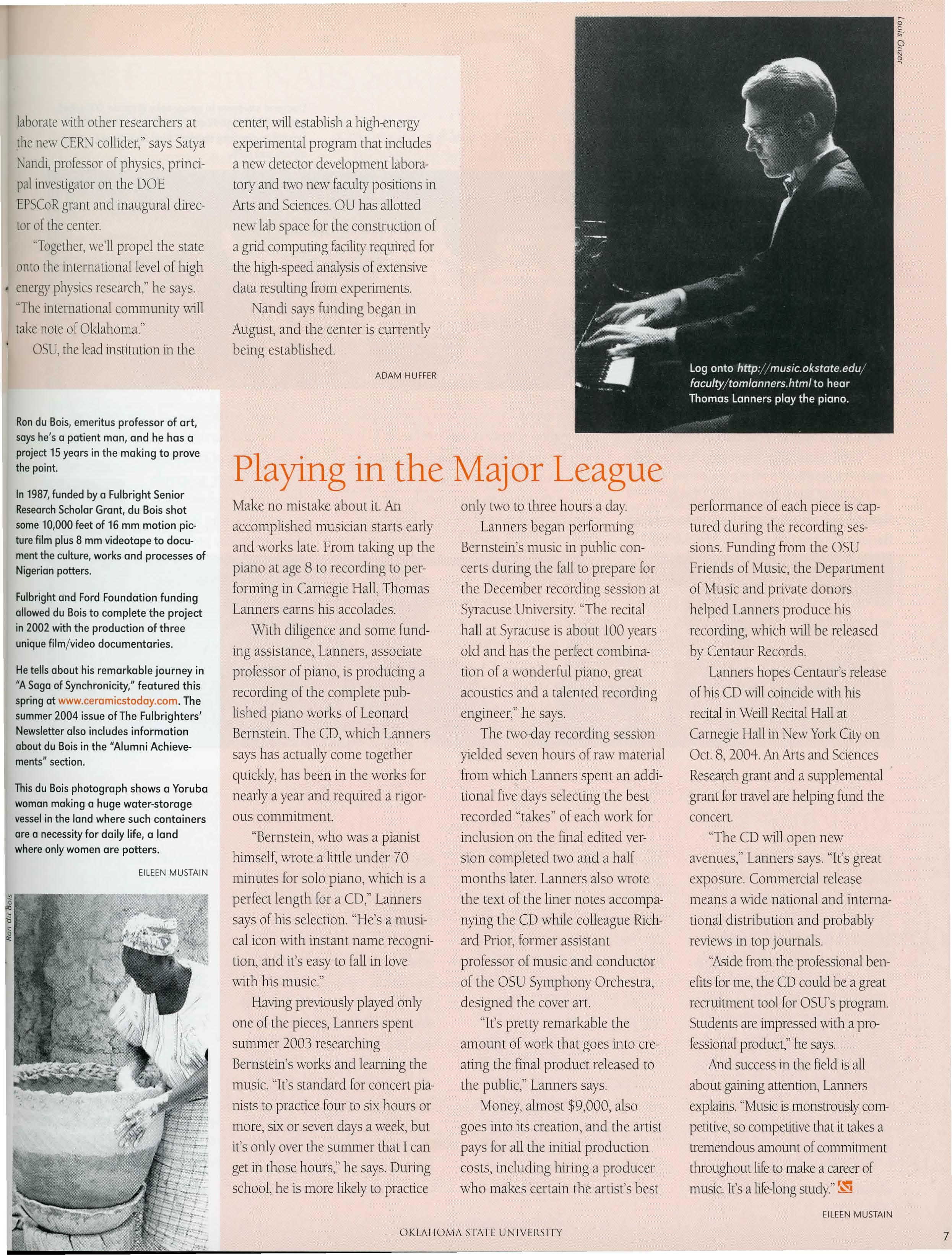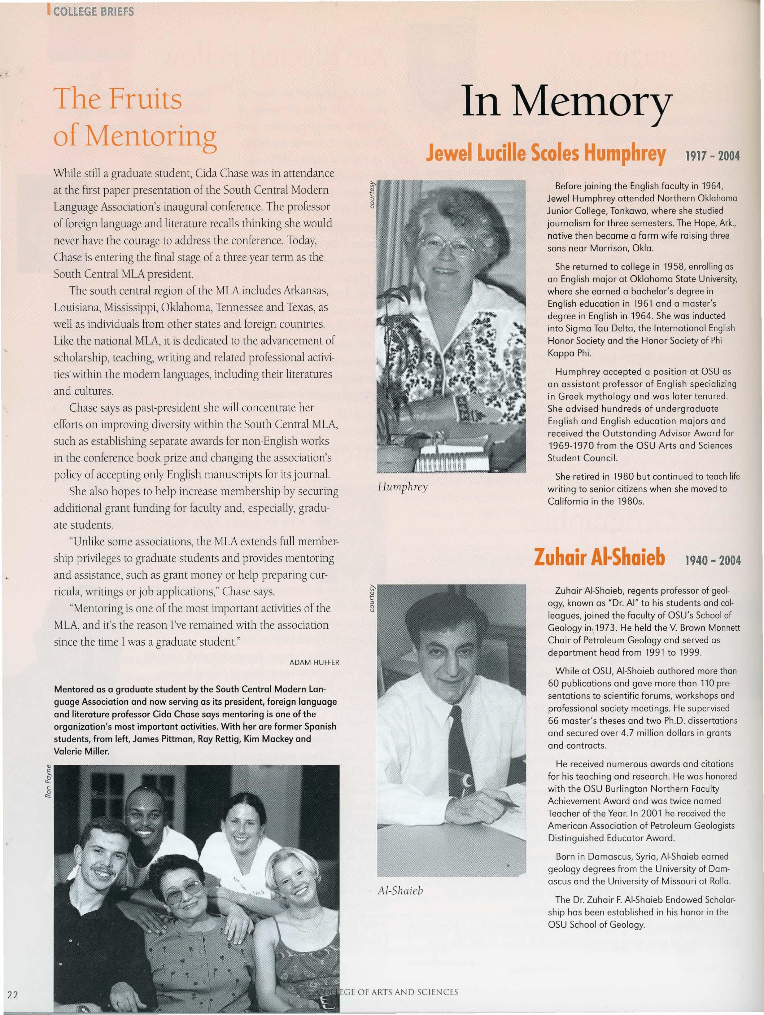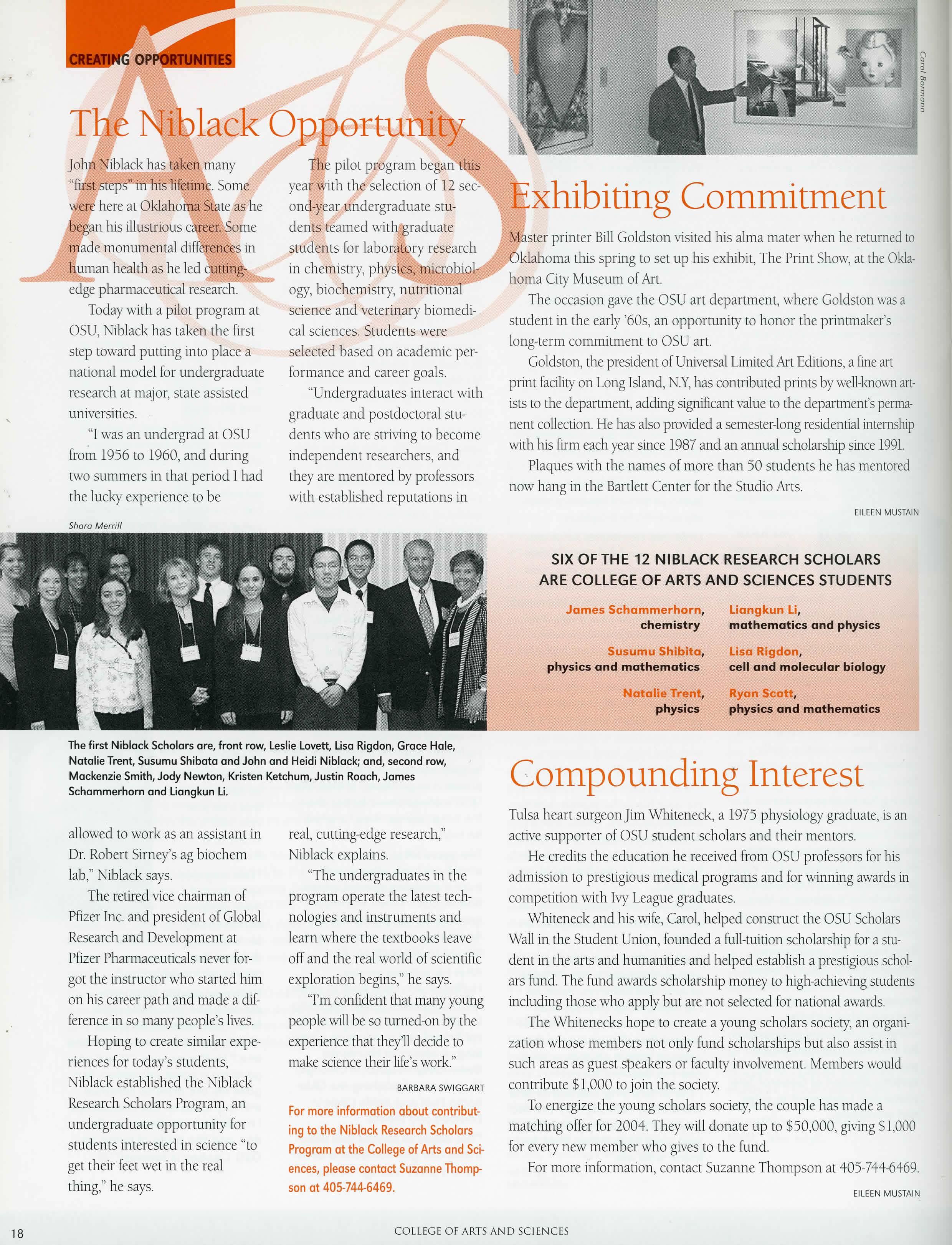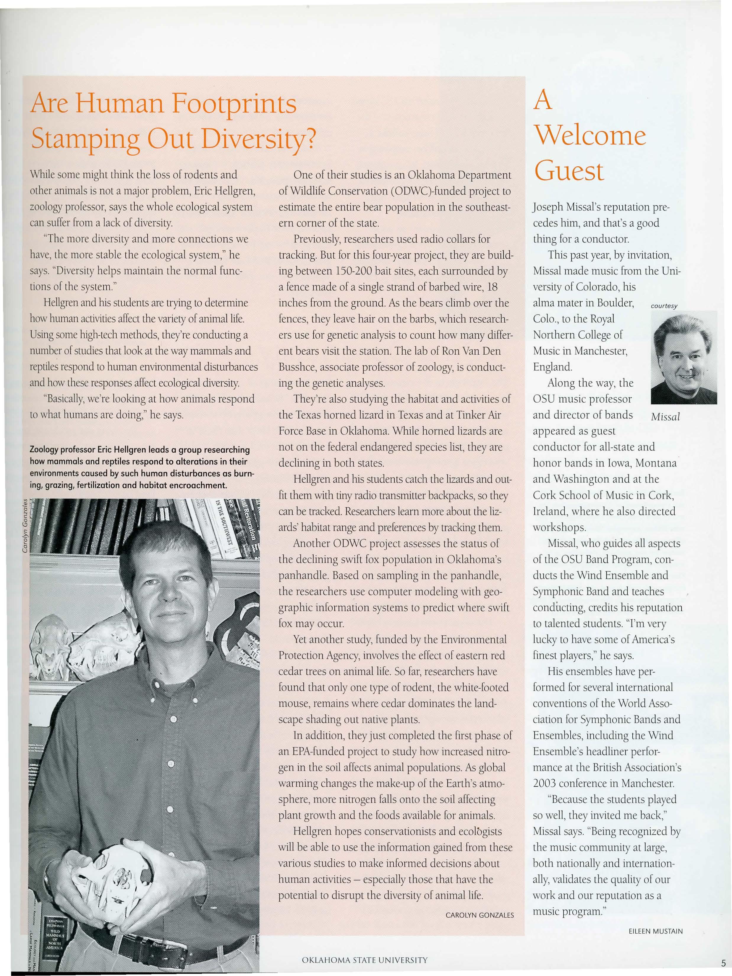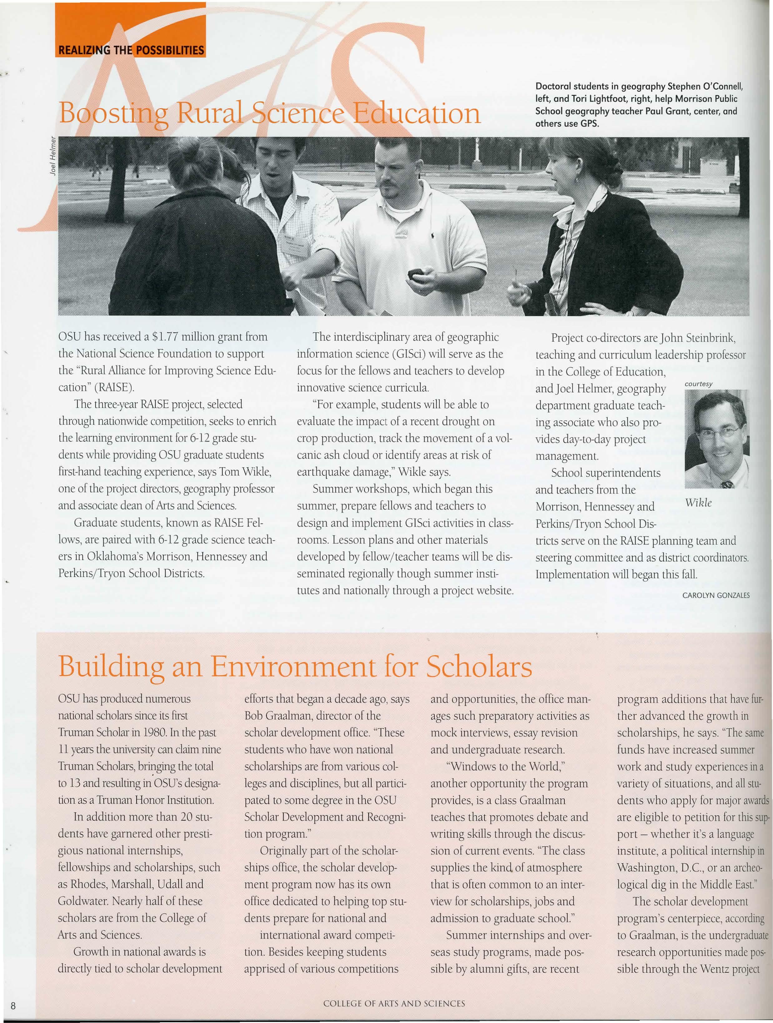 President Schmidly'scurrent campaign to make OSU a world-classland-grantuniversity,AchievingGreatness,presents a plan that includes emphasizing the humanities so that OSU students learn how to think creativelyand imaginatively about life and the environment. The College of Arts and Sciences,the intellectual core of the university,has a very important role to play in these developments,not only within individual disciplinesbut also in interdisciplinary activities.Interdisciplinary activitieswill play an increasingly important role in the new educationaland research opportunities as we becomeever more aware of the need to bring a wide range of ex.pertisetogether Lotackle the challenges of the 21st century.