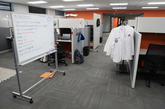 Four floors of the 43,400-plus square foot John W. Barson Building also underwent a renovation. Former labs were converted into dedicated medical student spaces with 260 study carrels and eight study conference rooms.