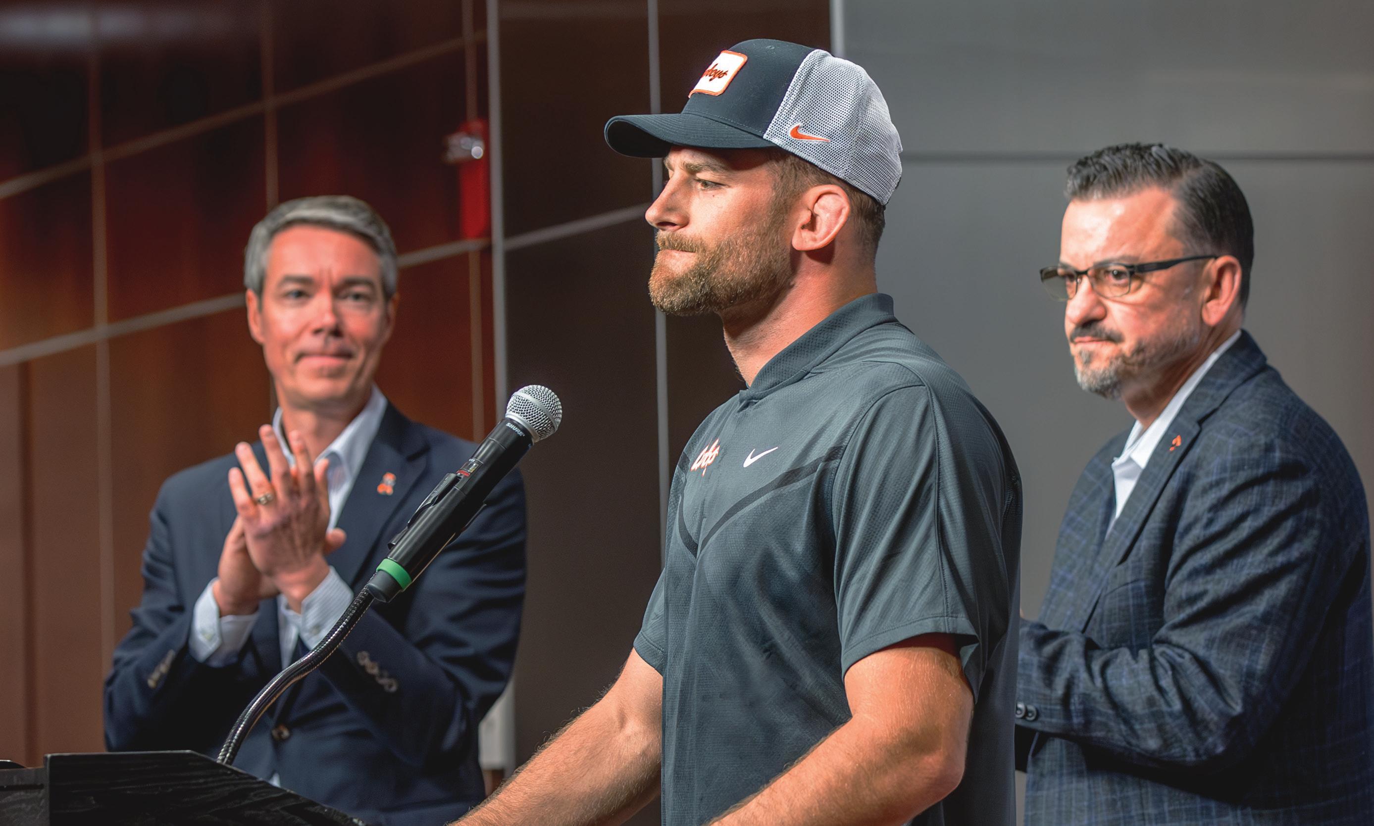 “I never really had a strong desire to be a head coach — at any university — but Oklahoma State is a place you can truly make a di erence in the sport of wrestling,” Taylor says. “When I talk about being comfortable, I knew what my life was going to look like (in Pennsylvania). And there’s an element of being uncomfortable, you know, taking our family and moving to a place that I had never really had a vision of living in …