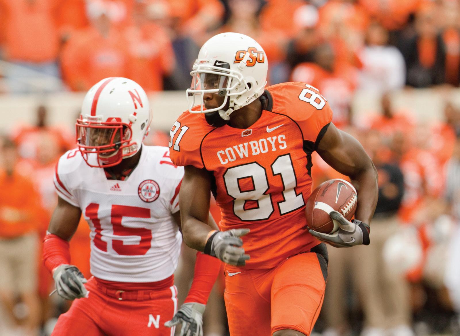 He was the MVP of the 2010 Valero Alamo Bowl against Arizona when he had nine catches for 117 yards with two scores to clinch the first 11-win season in Oklahoma State history.