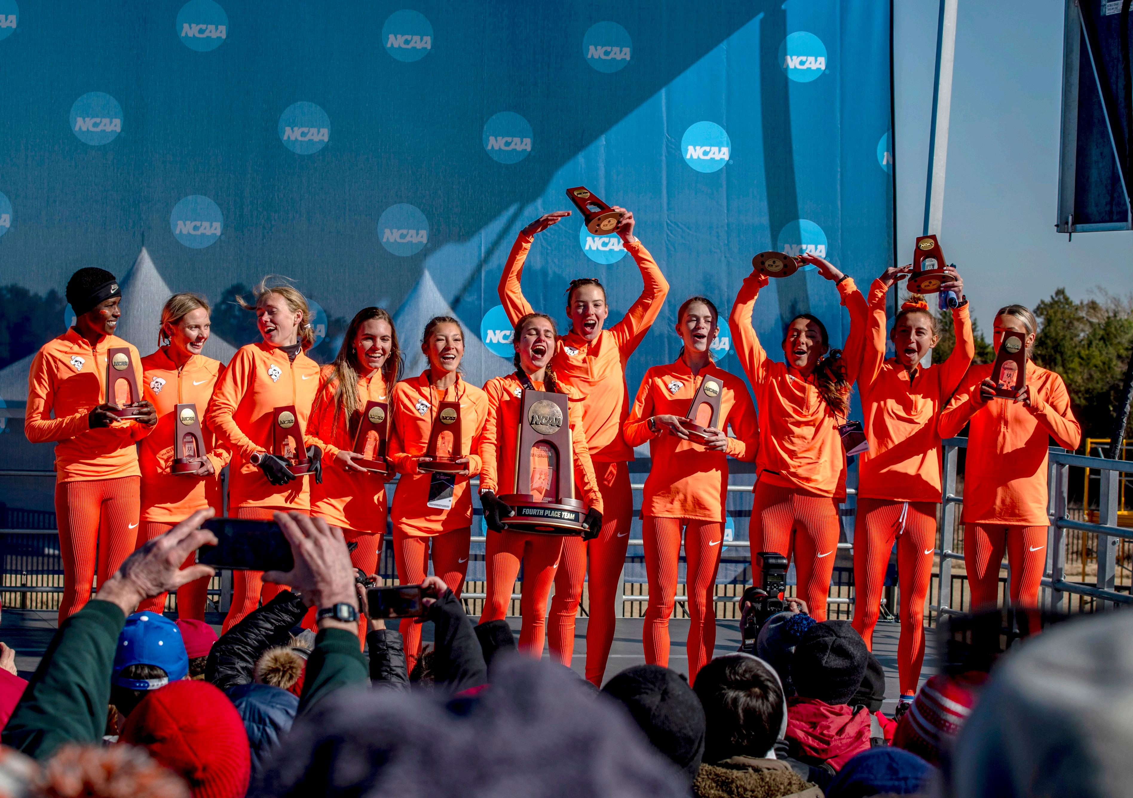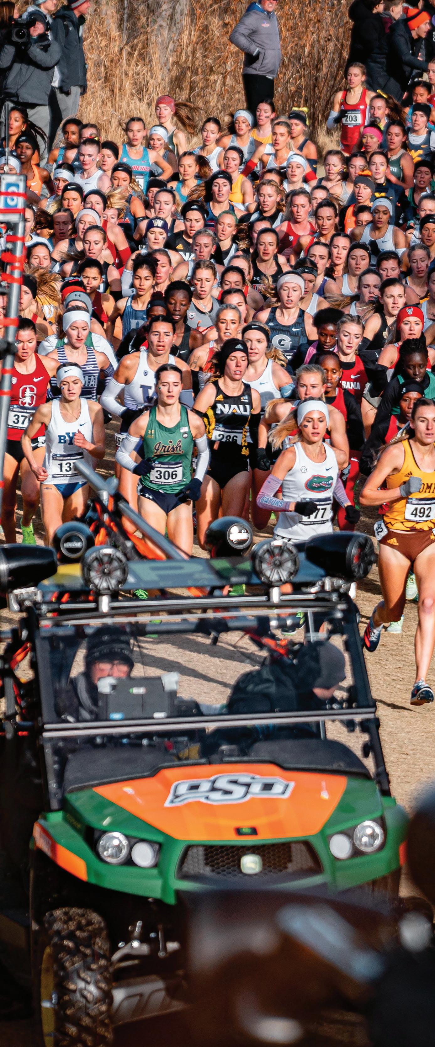 The Cowgirl Cross Country team celebrates a program-best fourth place team finish at the 2022 NCAA Cross Country Championships, held Nov. 19 in Stillwater. OSU was led by freshman sensation Natalie Cook who finished the 6K seventh overall (19:46.3). Teammate Taylor Roe crossed the finish line in 13th (19:56.4) to also earn All-America honors. Oklahoma State was the only school to have both the men's and women's teams earn a place on the podium.