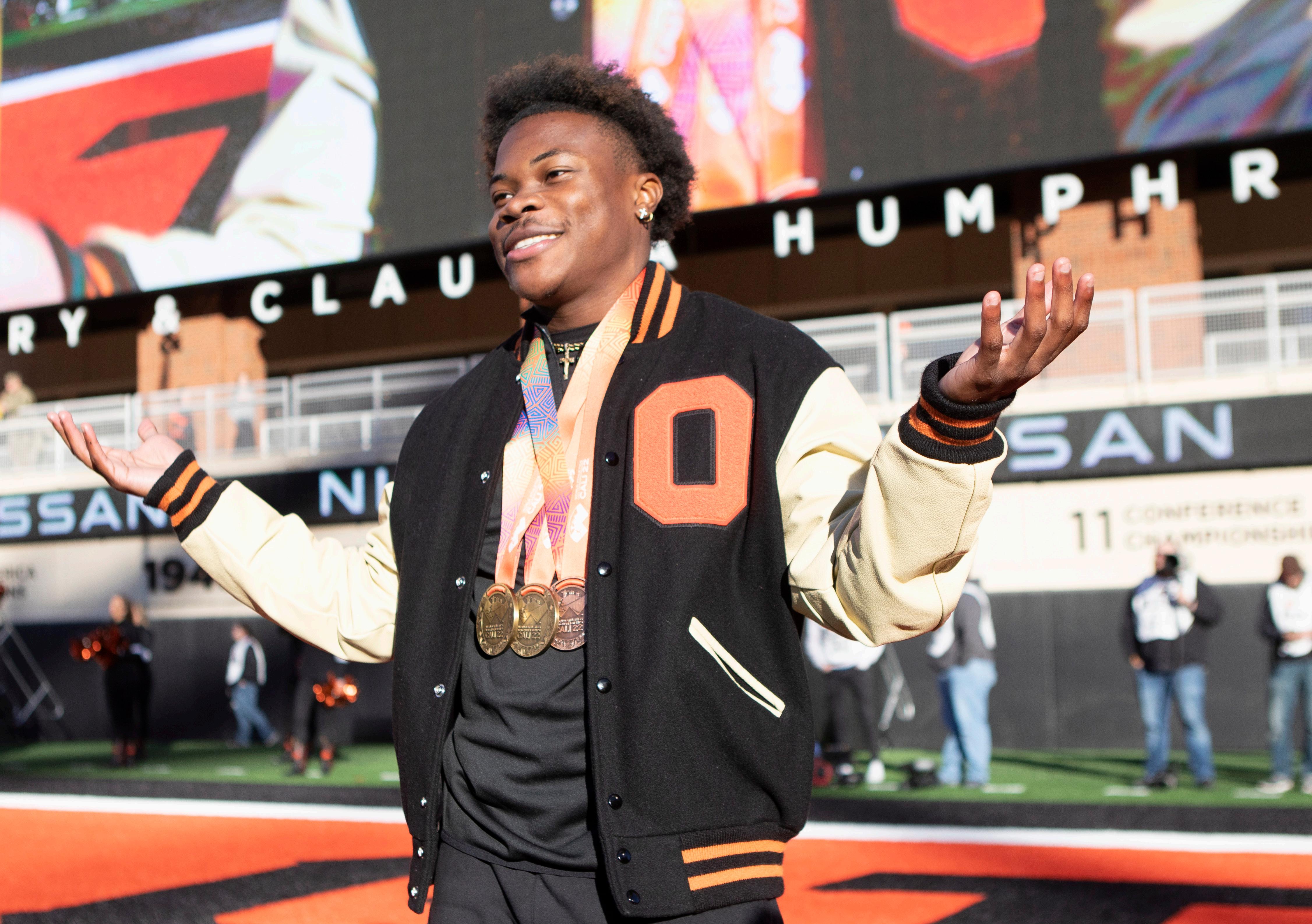Cowboy Track & Field's Charlie Bartholomew was recognized during the Iowa State football game for his medal-winning summer. The sophomore from McKinney, Texas, helped Team USA capture two golds and a bronze in relay events at the World Athletics U20 Championships in Cali, Colombia. Last season, Bartholomew broke OSU's 50-year-old school record in the outdoor 400 meters with a time of 45.40, eclipsing the mark set by Dennis Schultz in 1972.
