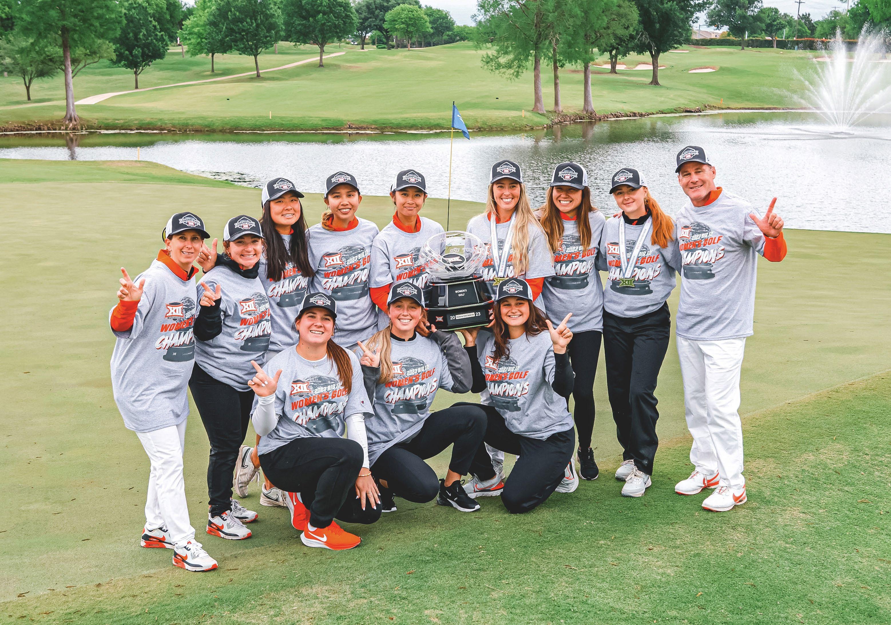 Oklahoma State women's golf swept both the team and individual titles at the Big 12 Championships at the Dallas Athletic Club, defeating runner-up Baylor by seven strokes while Maddison Hinson-Tolchard held o the field by a single stroke. Clemence Martin finished in a tie for third at 1-under, while Thitaporn Saithip (13th), Han-Hsuan Yu (21st) and Rina Tatematsu (34th) rounded out the scoring for the Cowgirls.