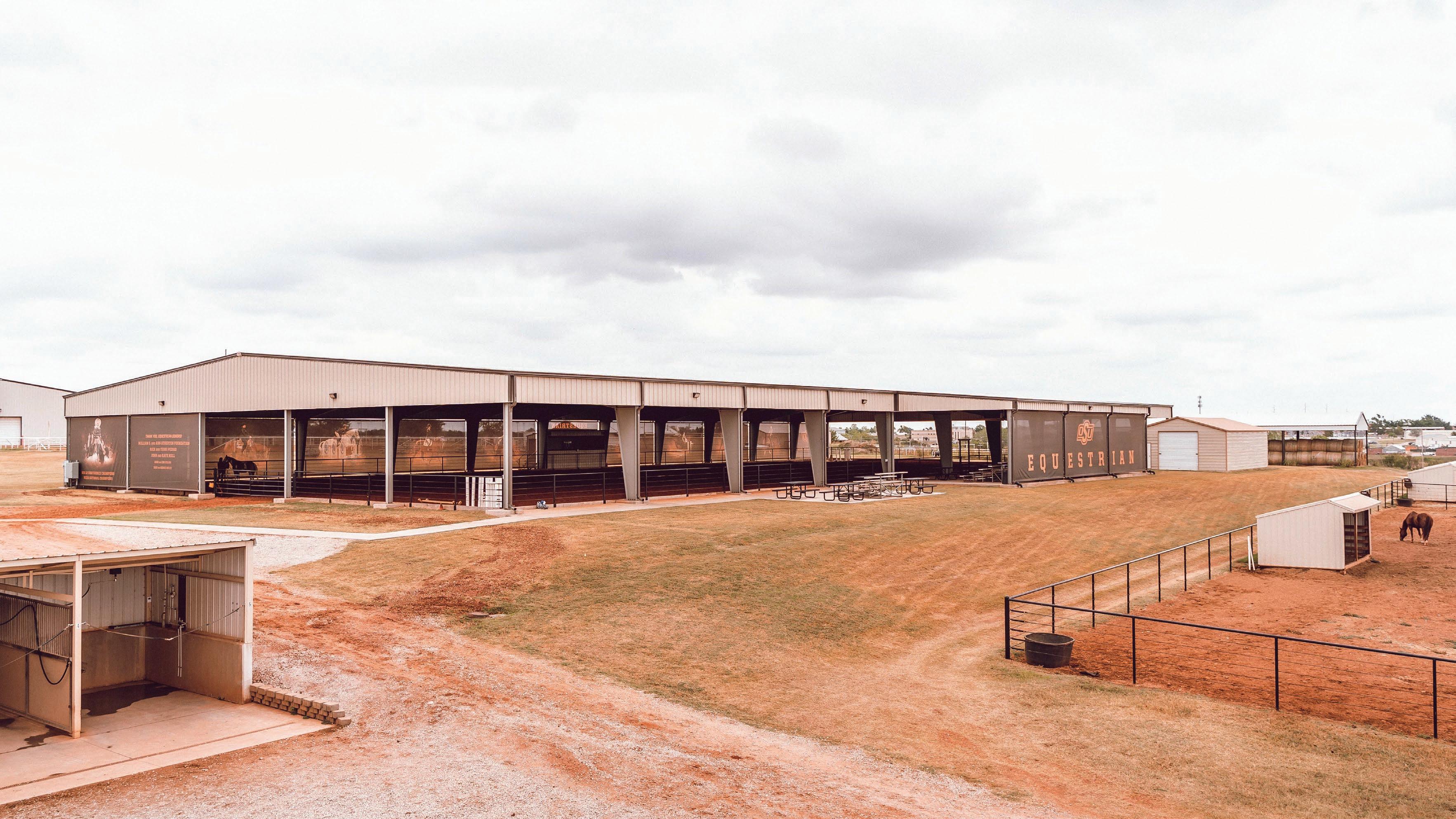 The Pedigo-Hull Equestrian Center sits atop a hill o McElroy Road, about a mile west of the Oklahoma State University campus, where the school’s deep agricultural roots are planted.