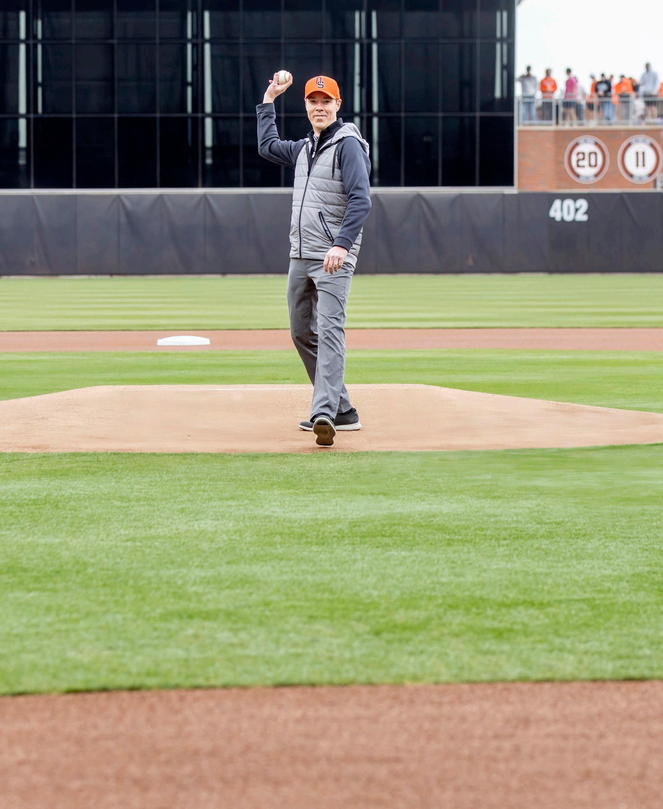 Athletic Director Chad Weiberg threw out the first pitch at O'Brate Stadium before the Cowboys' home opener vs. California Baptist on Feb. 21 Weiberg tossed a strike across the plate, while four Poke pitchers combined to throw a no-hitter!