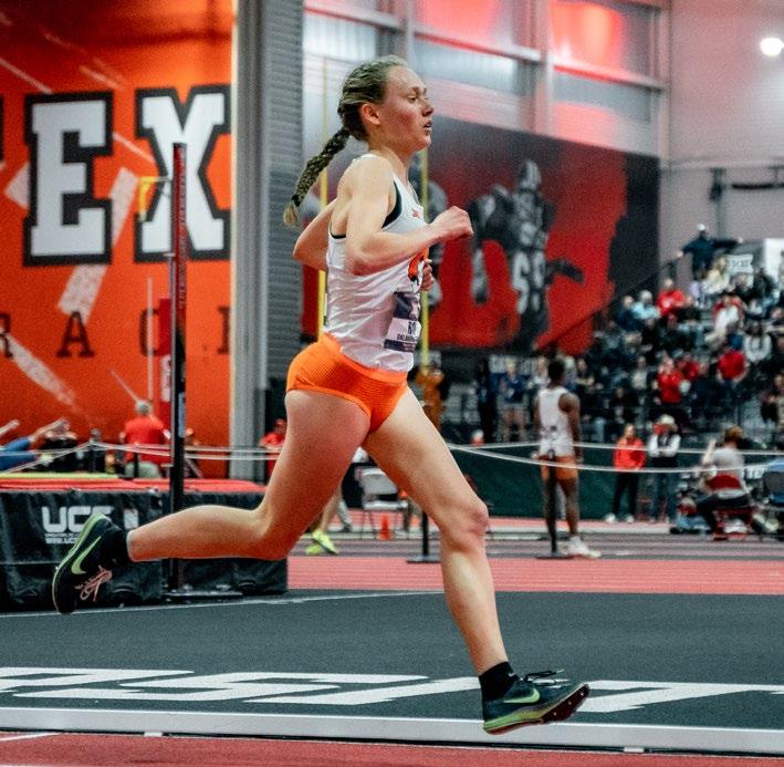 “There’s another great quote basically saying, ‘Your subconscious mind can’t tell the di erence between imagination and reality.’ So for me, if I’ve practiced running a race in my head leading up to a big race, and then I step on that line, I’m calmer. It’s like, ‘Oh, I’ve done this before.’ That’s one part of my routine that I really enjoy.”