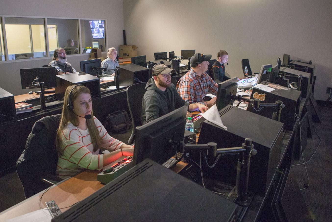 essentially serves as the athletic department’s own video company, working out of two multimillion-dollar control rooms in the west end zone of Boone Pickens Stadium.