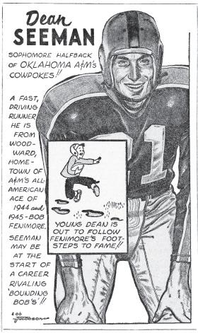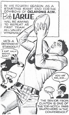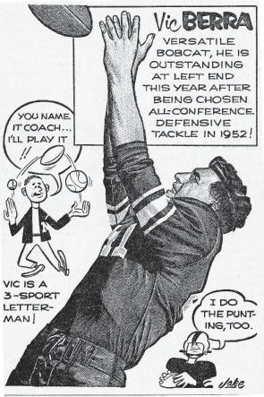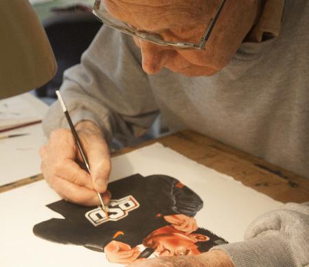 “I came up with that term — Sportoons — but didn’t come up with the idea of doing that kind of drawing,” Jacobson explains. “At that time there were a few guys who would make a drawing of an athlete and then add these little cartoons sprinkled around with extra information, and they were syndicated nationally. I had seen them and admired them. I guess I did some and showed them to (former OAMC sports information director) Otis Wile. He liked them enough, and I did a fair number of them for him.”