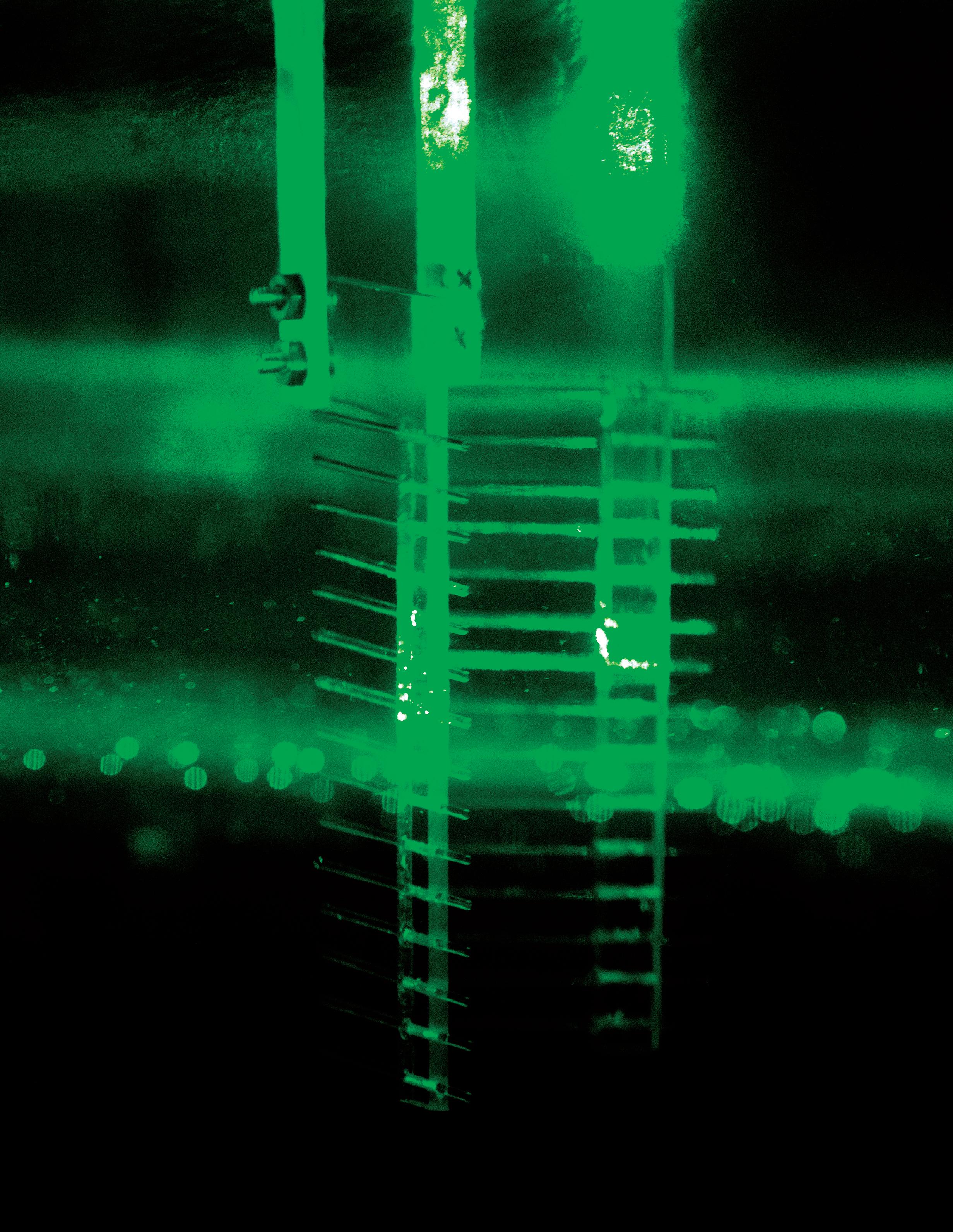 Models of insect wings are tested in an aquarium filled with sticky glycerin.