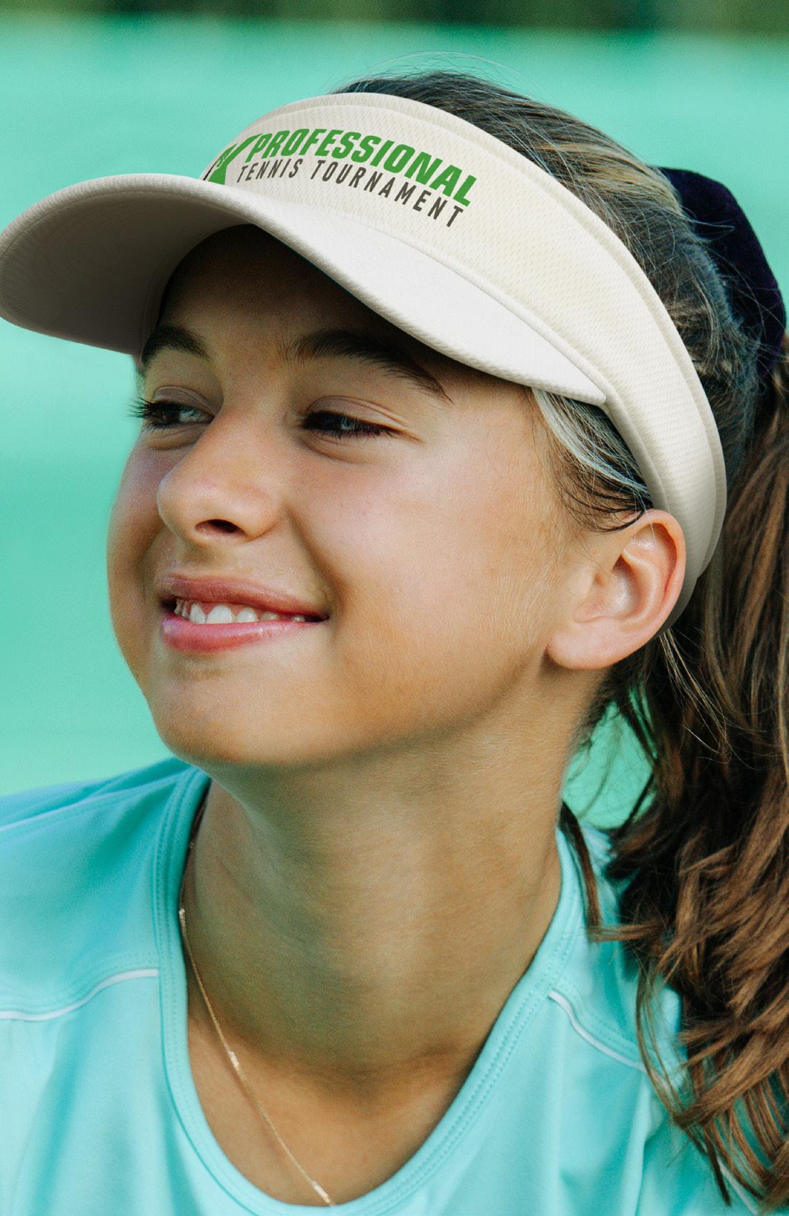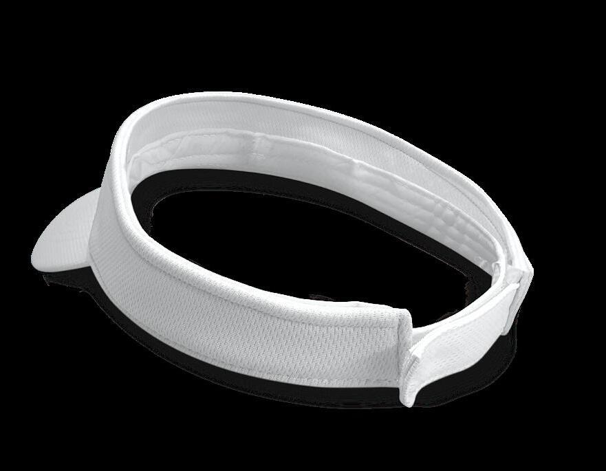 Premium quality polyester mesh sun and sports visor with a pre-curved peak, a sweat band and an adjustable Velcro closure which allows one size to fit most people.