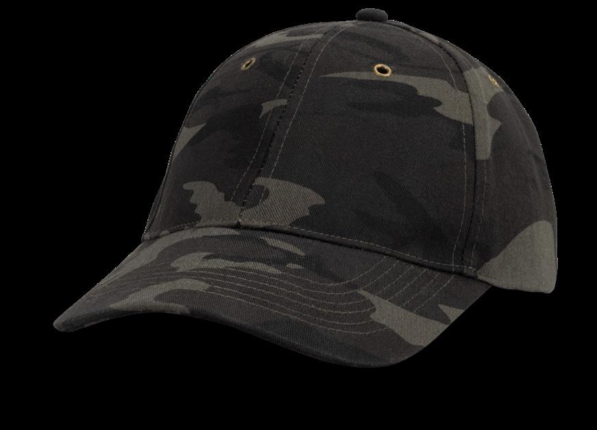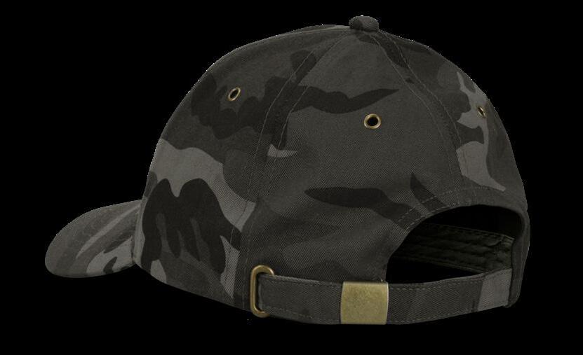Premium 6-panel camouflage cap with a curved peak which is manufactured from 100% cotton and has a metal buckle for easy closure. This cap has metal eyelets and comes in one size fits most.