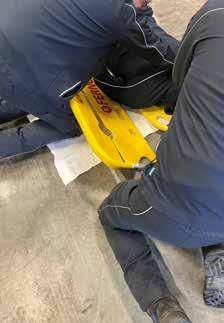 5. Draaien in blok rol volgens de afspraken. Niet vergeten padding te plaatsen en alles te immobiliseren. Je kan nog 2 man extra inschakelen om de schep (hoofd en voet gedeelte). in positie te houden terwijl de hulpverleners de blok-rol doen. Bij zo’n interventie is de brandweer ook ter plaatse alsook de MUG.
