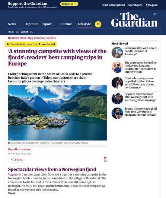 Veganeset Camping på Balestrand i Sognefjorden lagt øverst som reisemål. Storavisen har til og med lagt inn link til nettsiden deres. Bedre reklame kan du ikke kjøpe.
