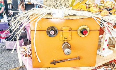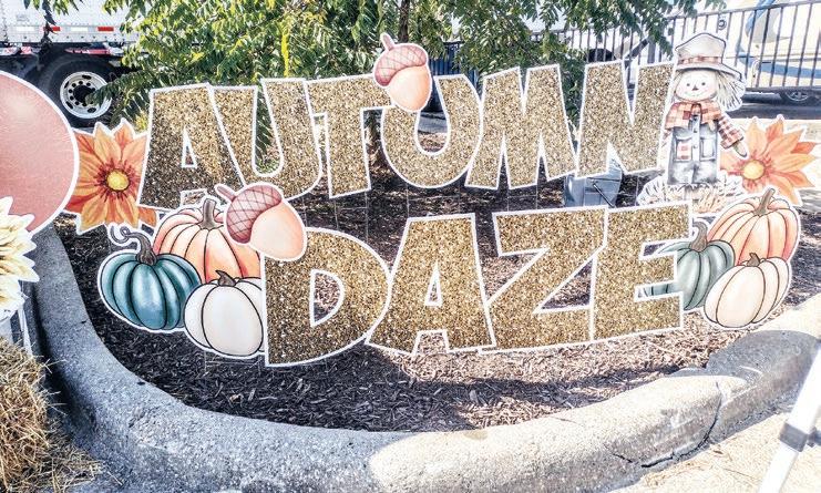 Clockwise from top left: Baker enjoys the day; Showing off his pumpkin; Many yummy specialties available from food trucks; A unique Autumn Daze booth demonstrates the making of socks and gloves; A perfect day for an outing with friends; Fall decor (Photos by K.D. Michaels)