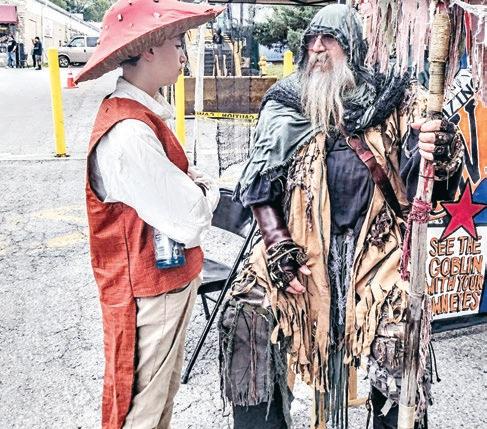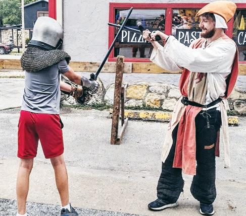 Left to right: A medieval sword fight; you never know what you’ll see at SOTO Fest; a look at the Ozarks’ past; a dunk tank raises money for a local nonprofit (Photos by K.D. Michaels)