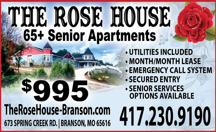 • Wellness checks 40/hrs. and may work some weekends. $16/$20 per hour If interested please call 417230-9190 or email Rosehouse8959@gmail.com. Therosehouse-branson.com