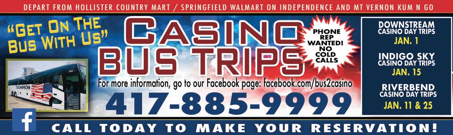 PHONE REPS WANTED – No cold calls. $$$. Flexible hours. Casino Bus Trips 417-335-4466 or 417-332-5000