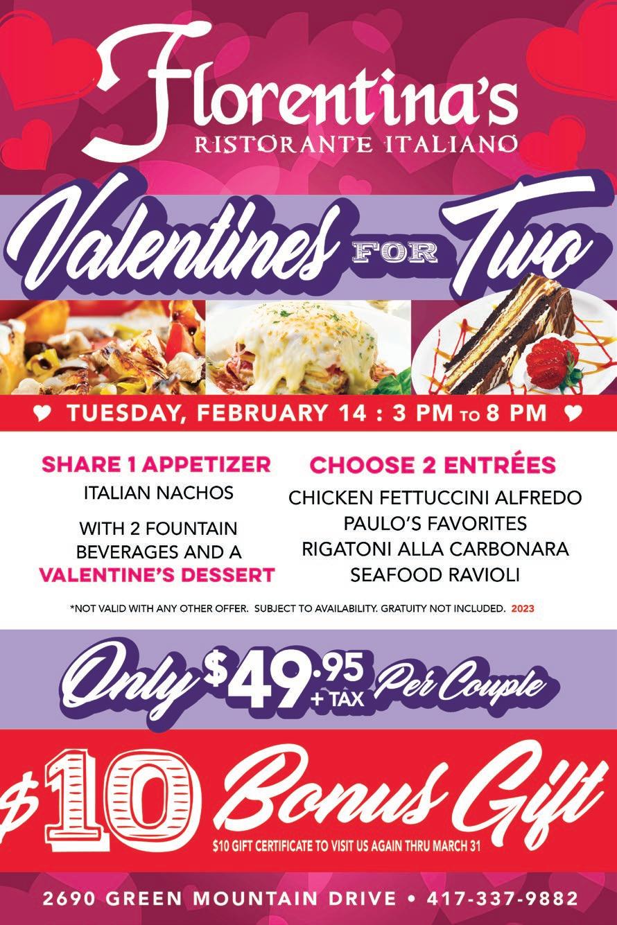 bransonglobe.com FEB. 10, 2023 • 3 Happy Valentine’s Day www.turtlecreekbranson.com info@turtlecreekbranson.com Pets of the Week Tri-Lakes Humane Society, Reeds Spring Call (417) 272-8113 or visit www.tri-lakeshumanesoc.org