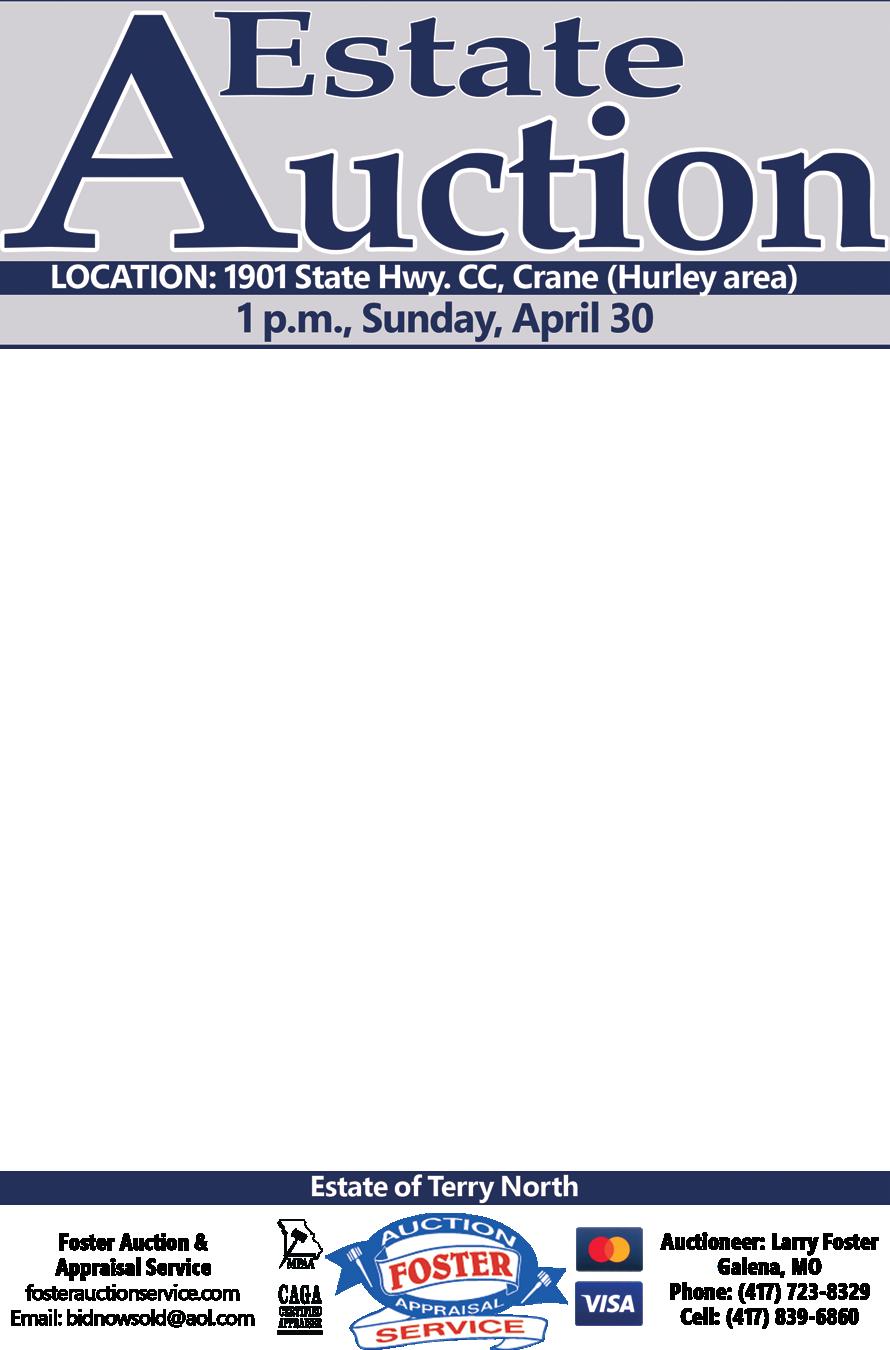 April 29, 8-3. 2308 State Hwy. 86, Ridgedale. Recreation, craft, household, clothing, and many other items galore. Public welcome.