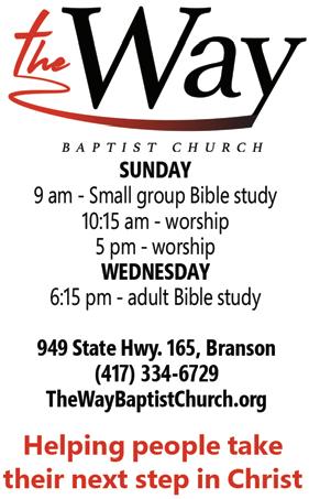 You are encouraged to worship with us! ForIknowthethoughtsthatIthinktowardyou,saystheLord,thoughtsofpeaceandnotofevil,togiveyouafutureandahope.–Jeremiah29:11 54 •APR. 28, 2023 bransonglobe.com It’s easy to advertise your Lord’s Day services. Just give us a call at 417-334-9100 and we’ll take care of the rest!